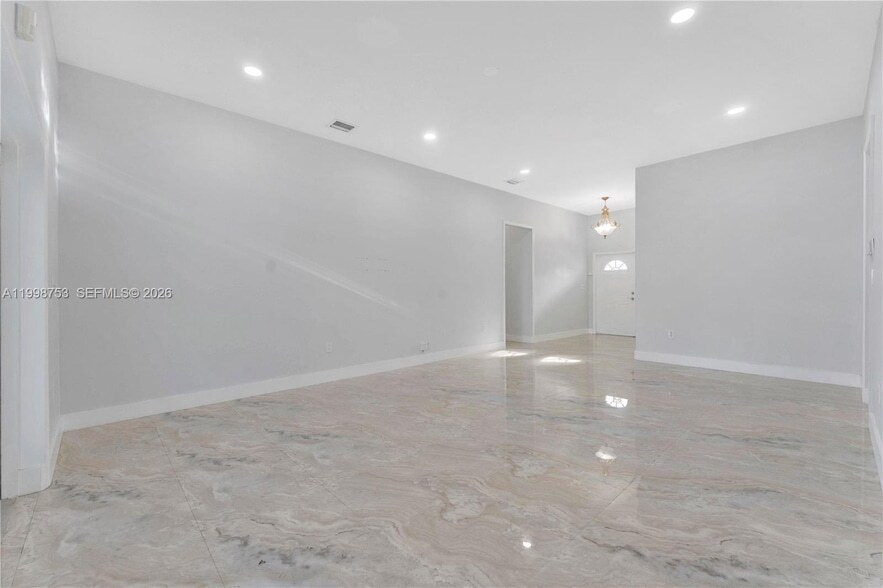 No HOA + Fast Approval + Pool Home with Studio Move-In Ready! Beautiful 3BD/2BA home in Fantasy Reef at Corsica North! Features porcelain flooring throughout, 10-ft ceilings, updated kitchen with granite countertops, wood cabinetry & stainless steel appliances. Bathrooms remodeled (2023) and A/C replaced (2022). Garage partially converted into an office/studio connected to the home (not an efficiency). Enjoy a spacious backyard with pool & bar area, perfect for entertaining, plus circular driveway. Prime location near A+ schools, London Square, Zoo Miami & major roads. No association, fast approval, pool service included. Owner interview required. Easy to show.