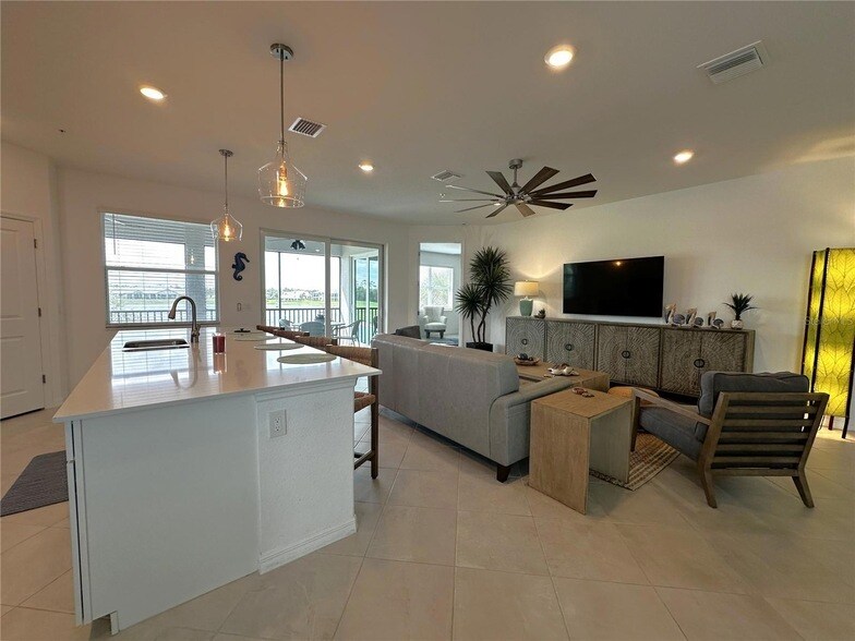 Experience the ultimate dream vacation every day in this breathtaking 3-bedroom, 2-bathroom Bay Creek Coach Home, featuring a 2-car garage, located within the prestigious Heritage Landing Golf & Country Club Punta Gorda s premier gated golf and social community! This gorgeous second-floor coach home is the largest available multi-family unit, offering a spacious and luxurious living space that's perfect for both relaxation and entertaining. As you step inside, you're greeted by an open, light-filled 2-story foyer that leads to a grand Great Room with soaring ceilings. The formal dining area seamlessly connects to an upgraded kitchen that will leave you in awe! With sleek stainless steel appliances, stunning quartz countertops, and elegant white cabinetry, the kitchen is both stylish and functional, complete with a massive island perfect for cooking, gathering, and entertaining. A sophisticated diagonal tile layout adds the perfect finishing touch. The Master Bedroom is a true retreat, featuring private access to a screened-in lanai, oversized walk-in closets, and an impressive ensuite with a luxurious oversized shower and dual vanities. With a thoughtful split bedroom floorplan, you ll enjoy maximum privacy for both you and your guests. The spacious screened lanai offers serene views of lush trees, the 18th hole, and a tranquil lake with views both front and back a peaceful sanctuary for relaxation or al fresco dining. Indulge in all the resort-style amenities that Heritage Landing has to offer, including a spectacular pool with dedicated lap lanes, a hot tub, and a state-of-the-art fitness center. Unwind at the full-service spa and saunas, or take to the courts with 6 Har-Tru tennis courts, 6 pickleball courts, and 2 bocce courts. Enjoy poolside dining at the pool caf , offering a full bar and diverse menu. And with 4 additional satellite pools spread throughout the community, relaxation is never far away! Best of all, all of this luxury is yours with a low one-time HOA transfer fee. Conveniently located just off Burnt Store Road, you re moments away from downtown Punta Gorda, Punta Gorda Airport, Fort Myers, Cape Coral, and beyond. Don t miss out on your chance to live the vibrant lifestyle you've always dreamed of this stunning home and incredible community await you. Your paradise escape starts here!