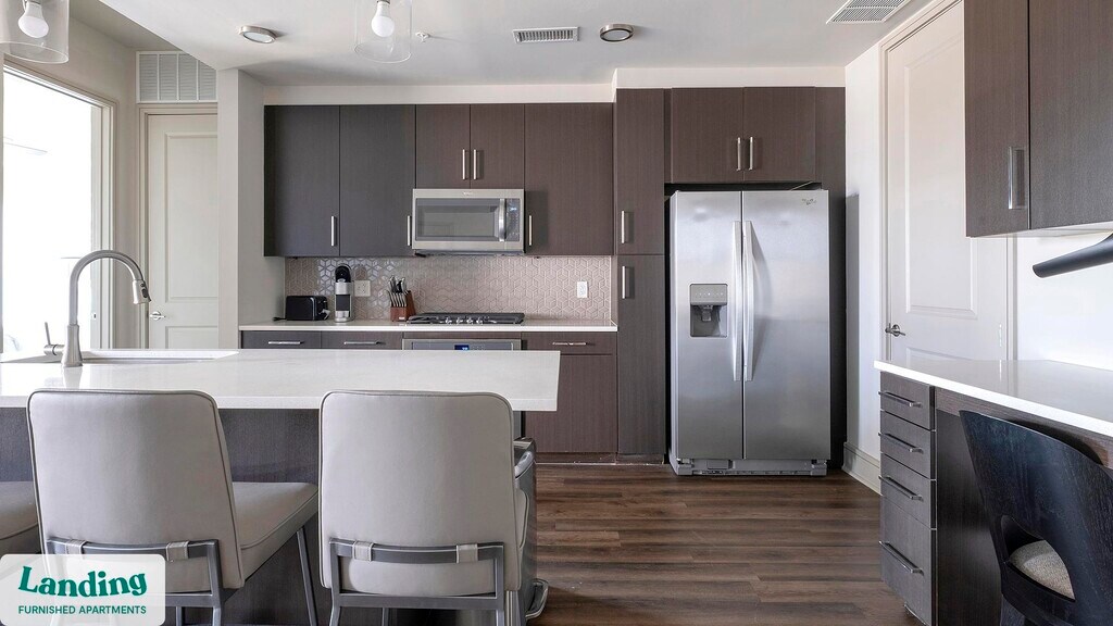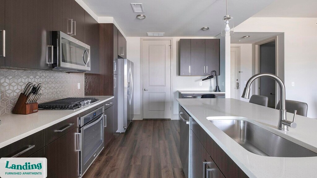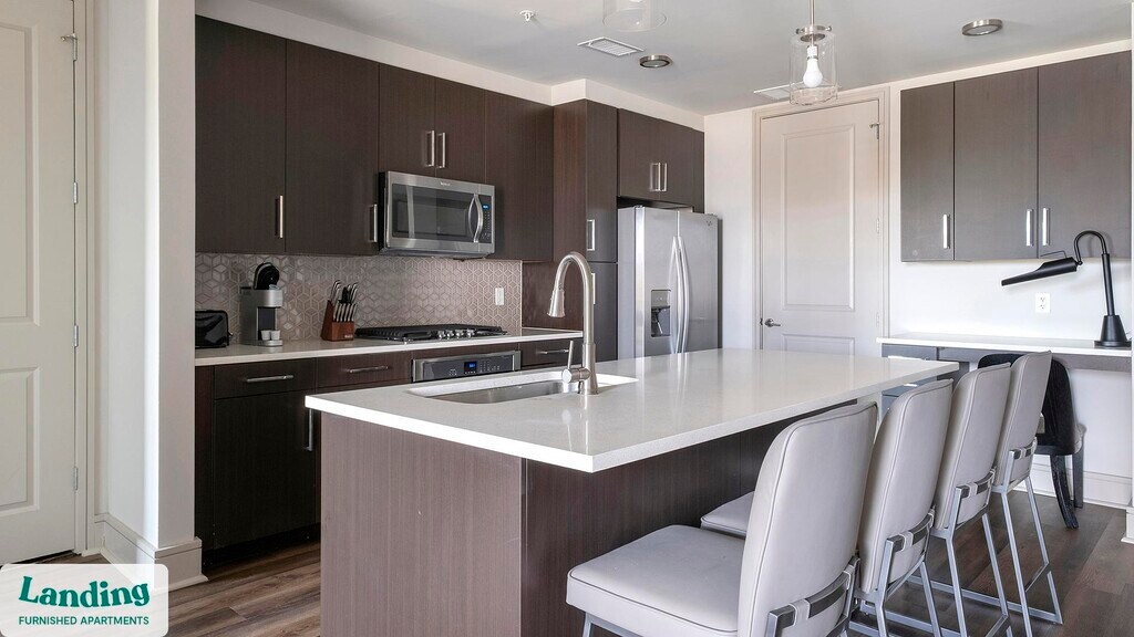 Landing is a top-rated, fully furnished apartment network with thousands of homes across 250+ U.S. cities. With premium amenities, a mobile app to manage your stay, and 24/7 support. Our apartments have everything you need for monthly and longer stays.: 6-Month Minimum base rent: starts at $3258/mo 12-Month Minimum base rent: starts at $3179/mo Landing's apartments at The Hayworth are designed for comfortable, easy living, with the ability to stay as long as you like. All Landing apartments include: - Fast Wi-Fi - Stylish furnishings - Fully-stocked bathroom - Smart TVs - Comfortable bed - Professionally cleaned - Guest support Stay longer for cheaper! The longer you stay, the bigger your discount. Price advertised is for a 12-month stay, including all utilities and fees, and may vary based on availability. We manage multiple units at this property. While all feature a similar style and furnishings, the layout and specific design elements may vary slightly from the photos provided. Some of the nitty-gritty: a background check and proof of income are required; we're completely smoke-free; pet-friendly options are available; parking is subject to availability.