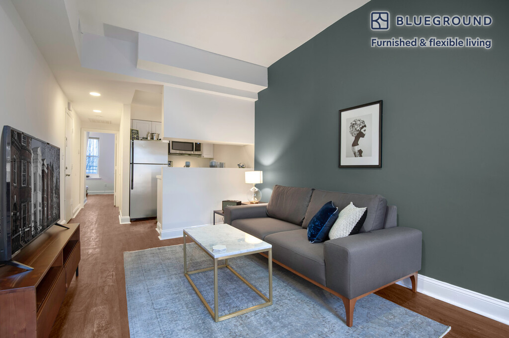 Discover the best of Washington, D.C., with this one bedroom apartment in Dupont Circle. It’ll be easy to simply show up and start living in this fashionably furnished apartment with its fully equipped kitchen, lovely living room, and our dedicated, on-the-ground support. (ID #WDC25) The advertised rate of $3,150/month is the lowest available price, based on a 12 month(s) stay with a move-in date of February 15, 2026. Rates vary depending on the duration of stay, season, and other parameters. For exact pricing and additional pricing components, please visit our website and enter your desired move-in and move-out dates. The rate is applicable when billed upfront; it can be higher if billed in multiple payments. Brokers are welcome to reach out. Were you looking for an unfurnished lease? Try Blueground instead and upgrade from unfurnished to furnished living: - Furnished at rates comparable to unfurnished - No setup or furniture costs - save thousands - Move-in ready - save time, just bring your suitcase Designed with you in mind As with any Blueground apartment, you’ll find a thoughtfully designed space complete with beautiful furniture and a fully equipped kitchen in this one bedroom property. And, thanks to our superior quality mattresses, luxury linens, and towels, you can relax knowing you’ll always feel comfortably at home. When you’re ready for some fun, you can take in the Washington, D.C. vibes or bring the entertainment to you with the premium wireless speaker or smart TV. This apartment also offers in-apartment laundry. Sleeping arrangements Queen Bed, 63in/160cm Amenities Building amenities unique to this one bedroom apartment include an on-site: - Dryer - Washing machine - Pets allowed Arrival and ongoing support The entire apartment is yours to enjoy! Throughout your stay, you’ll have access to our Client Experience team through the Blueground App. You can schedule additional cleanings, submit maintenance requests, and view our neighborhood recommendations with just a few taps. We’ll share all details upon confirmation of your stay. Ideally Located This apartment for rent in Dupont Circle invites you to explore DC's most beautiful neighborhood. Old-World townhouses blend harmoniously with condos and modern apartments, only 13 minutes away from Union Station by car and train. Passing through the inner ring of Dupont Circle is Massachusetts Avenue, known for its grand mansions and embassies. Widely popular for its bohemian and alternative scene, Dupont Circle maintains all the conveniences of urban living and a mix of popular galleries and fine dining. A bicycle will come in hand when exploring this bike- and pedestrian-friendly neighborhood with numerous green spaces for a quiet afternoon. Other things to note This Blueground apartment has flexible lease options, allowing you to book it for one month, a year, or more. Pets are welcome, though weight limits and breed restrictions apply and may incur fees. Please keep in mind that this is a walk up building. We take great pride in ensuring every photo displayed is shot in our own units with our actual furnishings. That said, we regularly refresh our decor and furniture arrangement, which may differ from what’s pictured. [SI]