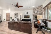 Beautifully updated 4-bedroom, 3.5-bath home featuring a desirable split floor plan and open-concept living. The chef's kitchen includes a new cooktop, dual ovens, and generous prep space -- ideal for entertaining. Enjoy cozy nights by the fireplace or gather around the backyard fire pit with built-in seating under the Arizona sky.Two RV gates provide room for your RV, boat, side-by-side, and more. The 3 oversized garage bays offer built-in cabinetry, a workstation, and additional storage -- perfect for hobbies or projects --A seamless blend of refined desert living and functional outdoor space!