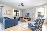 Feel at home in this spacious 7-bedroom retreat in ChampionsGate, offering 3,500 sq ft of elegance and comfort, perfect for families and groups. Just minutes from Disney, this villa features a private pool, hot tub, and a backyard oasis, along with a fully equipped kitchen and coffee bar. Enjoy free parking, fast Wi-Fi, and a workspace, while staying cool with A/C. Guests also have access to the resort clubhouse, gym, and water park. Relax in the open-concept living room with plush seating and a large Smart TV for movie nights. Step outside to your private pool and hot tub, surrounded by loungers for soaking up the Florida sunshine. The gourmet kitchen, featuring stainless steel appliances, a dishwasher, coffee maker, and blender, makes cooking a breeze. Share meals in the elegant dining room or outside under the patio. Seven beautifully designed bedrooms with Smart TVs ensure restful sleep, and modern bathrooms are well-appointed. In-house laundry facilities add convenience. The home offers ample parking and easy self check-in with a smart lock. Guests enjoy full access to ChampionsGate’s Oasis Club, including resort-style pools, a fitness center, air-conditioned cabanas, and on-site restaurants and cafés. Located in Davenport, Florida, this villa is inside the prestigious Villas at ChampionsGate Resort, just minutes from Disney World, Universal Studios, and Orlando’s top attractions. The community features the 20,000+ sq ft Oasis Clubhouse with resort-style pools, water slides, a lazy river, a splash park, and a playground for kids. Golf enthusiasts will appreciate the 18-hole championship course and the nearby 36-hole Greg Norman-designed course. With top-notch service and resort-style amenities, this neighborhood offers a perfect balance of luxury, fun, and relaxation. The villa is smoke-free and pet-free for everyone’s comfort. Quiet hours are from 10:00 PM to 7:00 AM, and guests are asked to respect resort rules regarding noise and trash disposal. Vehicles will be towed if parked improperly. Failure to comply with community rules may lead to a violation or fine. The villa provides a workspace with fast Wi-Fi, making it remote work-friendly. A laptop computer is not included.