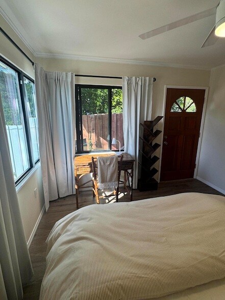 Remodeled Unit C at 1418 Alta Vista is a stylish studio residence in a prime hillside location, just minutes from the Santa Barbara Bowl, downtown, shops, restaurants, and entertainment. Thoughtful updates and modern finishes create a bright, comfortable living space with hardwood floors and an efficient, well-designed layout. The unit features a private entrance, quaint outside breakfast nook by the new fence, remodeled kitchen and full bathroom, in-unit laundry, air conditioning, and comes fully furnished, offering a turnkey opportunity in one of Santa Barbara's most convenient neighborhoods. $2,700/month utilities included. One-year lease. No subletting, ACH only. A rare opportunity.