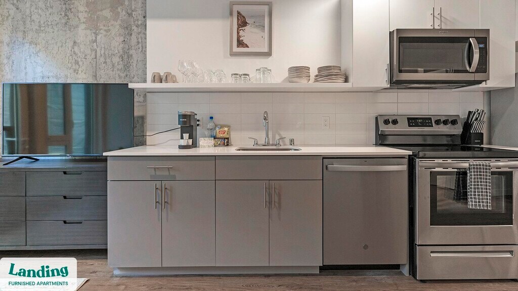 Landing offers flexible lease terms from weeks to months. Please always visit our website or contact us for the latest pricing & availability. Stay longer, save more: 6-Month Minimum base rent: starts at $2570/mo 12-Month Minimum base rent: starts at $2450/mo Landing offers flexible leases across a network of over 35,000 fully-furnished apartments throughout 375+ cities so you can rent on your terms, practically anywhere, and avoid the hassle of paying deposits or application fees. Visit to learn about all the benefits of a Landing membership, see our competitive up-to-date pricing, explore available apartments, take virtual tours, and make reservations online without jumping through traditional rental hoops. Landing's apartments at Madrone are designed for comfortable, easy living, with the ability to stay as long as you like. Experience living with Landing Every apartment is outfitted with all the modern essentials including: custom-designed furnishings, a fully-equipped kitchen with deluxe stainless steel appliances, a gourmet coffee maker, premium linens, Smart TVs, and incredibly fast, reliable internet for working from home. When you live with Landing, you'll enjoy a hassle-free experience with the added benefit of 24/7 access to our dedicated member experience team. Some of the nitty-gritty: a background check and proof of income are required; we're completely smoke-free; bundled utility packages and pricing vary based on length of stay; pet-friendly options available; listed price reflects a 12-month minimum stay.