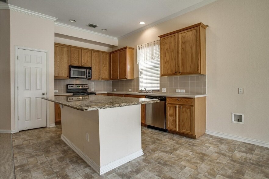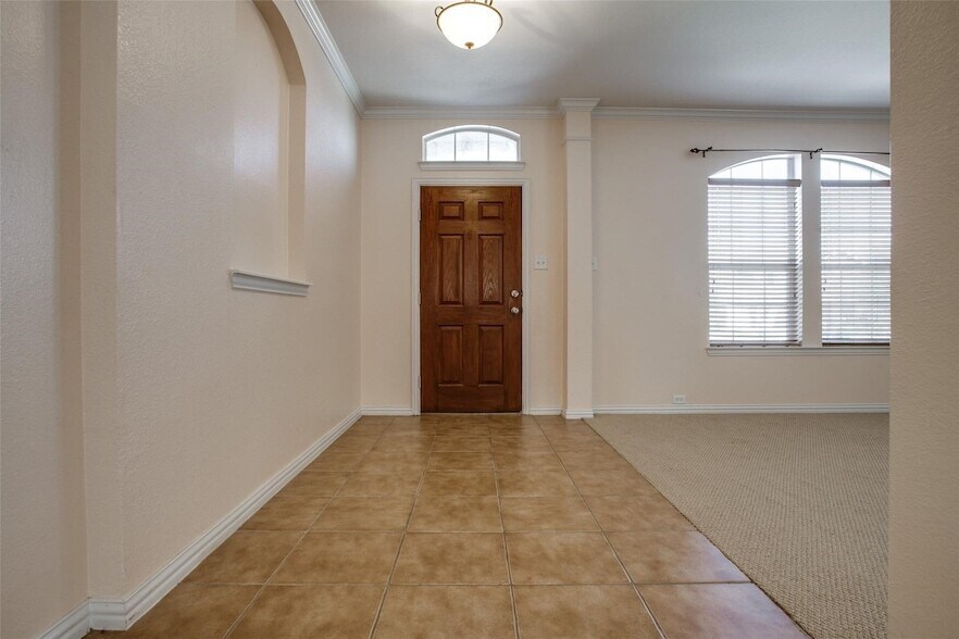 MOVE IN SPECIAL AVAILABLE, $100 AMAZON GIFT CARD FOR IMMEDIATE MOVE IN. This elegant two-story residence features a striking brick-and-stone exterior, a welcoming entrance, and a landscaped front yard. Inside, the open-concept layout includes a modern kitchen with granite countertops, wooden cabinetry, and stainless steel appliances, flowing into bright dining and living areas with tile and carpet flooring. Architectural details such as columns, arched openings, crown molding, and recessed lighting add sophistication throughout. The bedrooms are spacious and filled with natural light, complemented by neutral tones and ceiling fans for added comfort. Bathrooms are clean and functional, offering updated fixtures, tiled surrounds, and double vanities. A dedicated media room and a walk-in closet with built-in shelving provide extra convenience and versatility. Large windows with blinds and sheer curtains enhance the airy feel of the home, while a cozy fireplace and stylish staircase elevate the interior charm. Outside, a covered patio and fenced backyard offer the perfect space for outdoor relaxation and entertaining. This home blends comfort, style, and functionality in every corner. Home is available immediately. Pets are welcome and considered case by case ($600 refundable per pet). HOA is paid by owners. Need to bring Washer-Dryer-Refrigerator. housing vouchers, Section 8 accepted. Mention your broker name and number in online application if applicable. Qualifying criteria Deposit determined by Credit Score. $51 per adult application fee.
