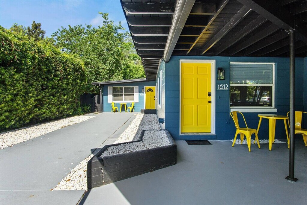 Feel at home in this family-friendly 2-bedroom Orlando home, complete with a private pool, full kitchen, and spacious living areas accommodating up to 6 guests. Located just minutes from Disney, Universal, and Orlando’s top attractions, this home offers a perfect retreat for families, groups, or pet owners. Designed for comfort and convenience, this well-insulated duplex features a master bedroom with a plush double bed and a second bedroom with a cozy daybed and trundle. The fully equipped kitchen is stocked with modern appliances, cookware, and utensils, perfect for preparing meals. Relax in the living room with a comfy sofa and TV, or make use of the dedicated workspace with high-speed Wi-Fi. Pets are welcome for a small fee, with a maximum of 2 dogs per stay. The fee is $60 for each small dog. Please bring your pet’s own bed and ensure they are well-behaved. Free on-site parking is available, shared with other guests. Centrally located, this home is just minutes away from Orlando’s top attractions, shopping centers, restaurants, and entertainment spots. Explore nearby Harry P. Leu Gardens, the Orlando Museum of Art, and Lake Eola Park, or enjoy the vibrant food scene at East End Market and The Strand restaurant. As the property includes several detached units, you may occasionally hear noise from neighboring guests. Quiet hours are from 8:00 PM to 8:00 AM. Smoking inside the property is strictly prohibited and will result in an automatic complaint. Check-in is at 4:00 PM and check-out is at 10:00 AM. Lock all doors when leaving the property and do not move furniture. A security camera is installed outside near the entrance for safety. Pets must be house-trained and non-aggressive, with a leash required when outside. Clean up after your pets both indoors and outdoors. For those working remotely, a dedicated workspace with a comfortable desk and high-speed Wi-Fi is included to keep you productive. [SI]