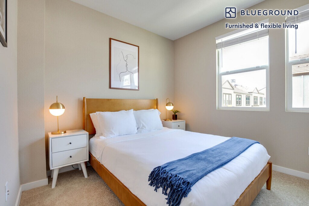 Show up and start living from day one in Milpitas with this pretty one bedroom Blueground townhouse. You’ll love coming home to this thoughtfully furnished, beautifully designed, and fully equipped Milpitas home. (ID #SFO1639) The advertised rate of $2,940/month is the lowest available price, based on a 6 month(s) and 4 day(s) stay with a move-in date of July 5, 2026. If you’re looking for a 1-year stay, the rate is $3,190/month. Rates vary depending on the duration of stay, season, and other parameters. For exact pricing and additional pricing components, please visit our website and enter your desired move-in and move-out dates. The rate is applicable when billed upfront; it can be higher if billed in multiple payments. Brokers are welcome to reach out. Were you looking for an unfurnished lease? Try Blueground instead and upgrade from unfurnished to furnished living: - Furnished at rates comparable to unfurnished - No setup or furniture costs - save thousands - Move-in ready - save time, just bring your suitcase Designed with you in mind As with any Blueground townhouse, you’ll find a thoughtfully designed space complete with beautiful furniture and a fully equipped kitchen in this one bedroom property. And, thanks to our superior quality mattresses, luxury linens, and towels, you can relax knowing you’ll always feel comfortably at home. When you’re ready for some fun, you can take in the Milpitas vibes or bring the entertainment to you with the premium wireless speaker or smart TV. This townhouse also offers in-townhouse laundry. Sleeping arrangements Queen Bed, 63in/160cm Amenities Building amenities unique to this one bedroom townhouse include an on-site: - Dryer - Washing machine - Parking - Pets allowed Arrival and ongoing support The entire townhouse is yours to enjoy! Throughout your stay, you’ll have access to our Client Experience team through the Blueground App. You can schedule additional cleanings, submit maintenance requests, and view our neighborhood recommendations with just a few taps. We’ll share all details upon confirmation of your stay. Ideally Located This furnished home is located in Milpitas in Santa Clara County, just north of San Jose. Set between the two major freeways (I-880 and I-680) of Silicon Valley, Milpitas is prized for its convenient location and is home to Cisco, Lifescan, SanDisk, and several other major tech companies. The city is diverse and has a well-educated population and excellent schools, making it a good choice for families. Milpitas is home to great shopping, including notable Asian markets and The Great Mall of the Bay Area. While most residents rely on cars to get around, a light rail line opened in 2004, and an extension of BART is planned for the near future. Milpitas is progressive and conveniently located, making it an ideal Bay Area location. Other things to note This Blueground townhouse has flexible lease options, allowing you to book it for one month, a year, or more. Pets are welcome, though weight limits and breed restrictions apply and may incur fees. Parking is offered based on availability and is subject to a fee. Please keep in mind that this is a walk up building. We take great pride in ensuring every photo displayed is shot in our own units with our actual furnishings. That said, we regularly refresh our decor and furniture arrangement, which may differ from what’s pictured. [SI]