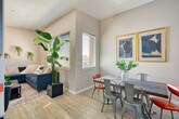 Enjoy unbeatable views from your private rooftop deck in Portland’s sought-after Hawthorne neighborhood. This bright 4-bedroom 2-bathroom apartment sleeps 8 and features three queen bedrooms and a bunk room, perfect for families or groups. Soak in the sun, stream your favorites on Smart TVs, and explore the best of Portland just steps away. Fast Wi-Fi, central A/C, and stylish interiors ensure a cozy, connected stay in the heart of Southeast Portland. This home is on the 3rd floor with no elevator, making it unsuitable for guests with mobility issues. This third-story walk-up combines sleek modern living with artistic Portland flair. The exterior’s rusted metal, painted stucco, and Shou Sugi Ban siding make a bold first impression, while inside, clean design and natural light set a calming tone. The apartment includes three queen bedrooms with plush bedding, blackout shades, and quiet comfort, and a bunk room with twin beds perfect for kids or extra guests. The living room features a Smart TV with streaming, mid-century touches, oversized windows, and 9-ft ceilings for an airy vibe. The kitchen and dining area boast stainless steel appliances, a dishwasher, a Keurig, a full cookware set, quartz countertops, and a full dining set-up for meals in or takeout from Hawthorne’s best spots. The two modern full baths come with tub/shower set-ups, stocked with shampoo, a hairdryer, and fresh towels. The rooftop deck offers incredible city views, bistro seating, and twinkling string lights—ideal for morning coffee or evening wine. Extras include mini-split A/C and heat in every room, an in-unit washer/dryer, lightning-fast Wi-Fi, streaming TV, and premium finishes throughout. Street parking only is available with no private spot. Commonly known as “Foodie Row,” the Hawthorne/Buckman District places you within walking distance of a wide variety of top-notch local flavors, with no chain restaurants in sight. Make new friends over vegan poutine fries and grilled PB&Js at the Cartopia food cart pod, indulge in delicious wings right around the corner at Fire on the Mountain, share a pie at Apizza Scholls (consistently voted Portland’s favorite pizza), or enjoy a fancy night out at Castagna—all within a 1.5-mile stretch. The apartment is conveniently located in the vibrant Southeast Portland neighborhood, making it easy to explore the city. If you're driving, you can access the property from SE Hawthorne Blvd or SE Division St, both major thoroughfares. Ample street parking is available near the property; please check the signage for any restrictions or time limits. For those using public transportation, the area is well-served by several bus lines 14 and 15 running nearby. Bus line 14 travels along SE Hawthorne Blvd, connecting you to downtown Portland and the Hawthorne District, while bus line 15 travels along SE Belmont St, providing access to the Lloyd District and the Pearl District. Ride-sharing services like Uber and Lyft are readily available in Portland and can drop you off right at the doorstep. If you just plan on roaming around the city and checking out Portland's diverse neighborhoods, there's really no need for a car. The Hawthorne area is a walker's paradise, with a 92/100 WalkScore® and 98/100 BikeScore®. Portland is also known for being bike-friendly, with numerous bike lanes and racks available throughout the neighborhood. Renting a bike can be a great way to explore the area and enjoy the local scenery. With its excellent location, the apartment offers easy access to the trendy shops, restaurants, and cafes of Southeast Portland, as well as nearby attractions such as Laurelhurst Park and the historic Bagdad Theater. The apartment is on the 3rd floor with no elevator, making it unsuitable for guests with mobility issues. Quiet hours are from 10 PM to 8 AM, and guests are asked to be respectful of neighbors. No parties or events are allowed, and smoking is prohibited. If cleaners smell smoke or believe guests were disrespectful, the cleaning fee will be doubled. Check-out is by 11 AM, and self check-in is available with a lockbox. Fast Wi-Fi ensures a cozy, connected stay, making it ideal for remote work. [SI]