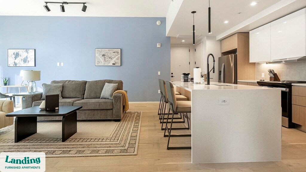 Landing offers flexible lease terms from weeks to months. Please always visit our website or contact us for the latest pricing & availability. Stay longer, save more: 6-Month Minimum base rent: starts at $4265/mo 12-Month Minimum base rent: starts at $3906/mo Landing offers flexible leases across a network of over 35,000 fully-furnished apartments throughout 375+ cities so you can rent on your terms, practically anywhere, and avoid the hassle of paying deposits or application fees. Visit to learn about all the benefits of a Landing membership, see our competitive up-to-date pricing, explore available apartments, take virtual tours, and make reservations online without jumping through traditional rental hoops. Landing's apartments at The Floodgate are designed for comfortable, easy living, with the ability to stay as long as you like. Experience living with Landing Every apartment is outfitted with all the modern essentials including: custom-designed furnishings, a fully-equipped kitchen with deluxe stainless steel appliances, a gourmet coffee maker, premium linens, Smart TVs, and incredibly fast, reliable internet for working from home. When you live with Landing, you'll enjoy a hassle-free experience with the added benefit of 24/7 access to our dedicated member experience team. Some of the nitty-gritty: a background check and proof of income are required; we're completely smoke-free; bundled utility packages and pricing vary based on length of stay; pet-friendly options available; listed price reflects a 12-month minimum stay.