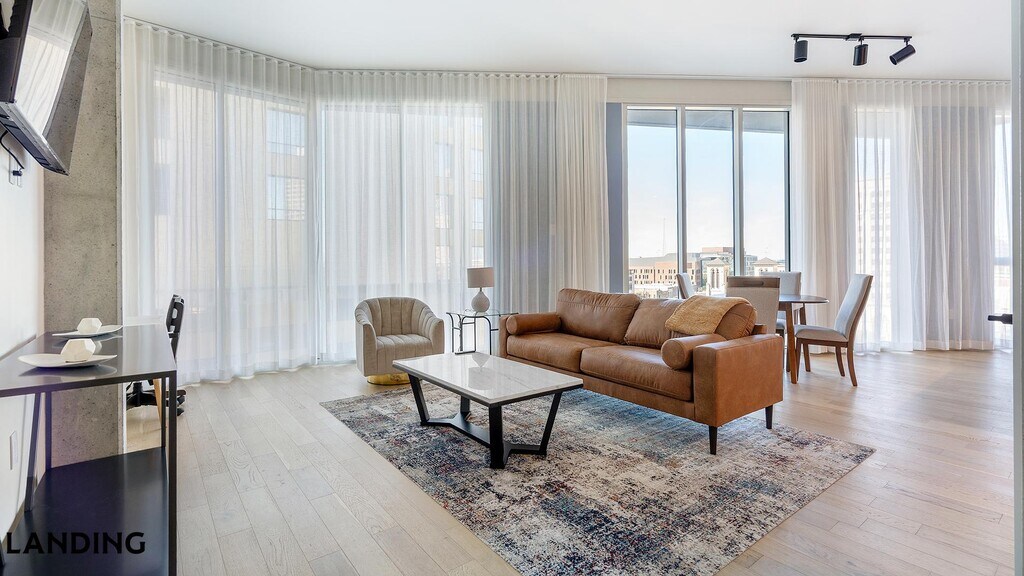 Landing is a top-rated, fully furnished apartment network with thousands of homes across 250+ U.S. cities. With premium amenities, a mobile app to manage your stay, and 24/7 support. Our apartments have everything you need for monthly and longer stays. 6-Month Minimum base rent: starts at $4903/mo 12-Month Minimum base rent: starts at $4841/mo Landing's apartments at The Floodgate are designed for comfortable, easy living, with the ability to stay as long as you like. All Landing apartments include: - Fast Wi-Fi - Stylish furnishings - Fully-stocked bathroom - Smart TVs - Comfortable bed - Professionally cleaned - Guest support Stay longer for cheaper! The longer you stay, the bigger your discount. Price advertised is for a 12-month stay, including all utilities and fees, and may vary based on availability. We manage multiple units at this property. While all feature a similar style and furnishings, the layout and specific design elements may vary slightly from the photos provided. Some of the nitty-gritty: a background check and proof of income are required; we're completely smoke-free; pet-friendly options are available; parking is subject to availability.
