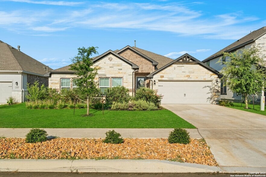 Welcome to your dream retreat in the heart of the Texas Hill Country! Nestled in the highly desirable Esperanza community, this beautifully maintained 3-bedroom, 2 1/2-bathroom with bonus room home offers the perfect blend of elegance, comfort, and convenience. Step inside to discover an open-concept floor plan flooded with natural light, featuring high ceilings, luxury vinyl plank flooring, and designer finishes throughout. The gourmet kitchen is a chef's dream, complete with granite countertops, stainl