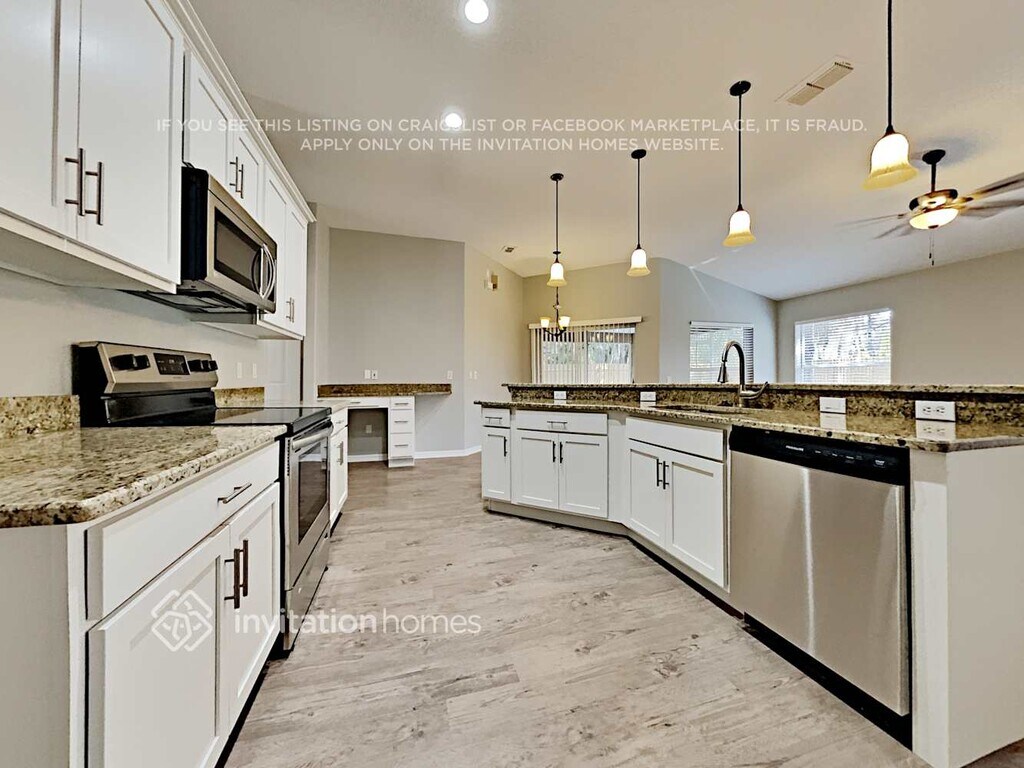 Lease this home and get more from Invitation Homes professional property management. This home comes fully loaded with quality amenities, must-have services, high-end tech and ProCare® professional maintenance. Your estimated total monthly payment is $2543.90. That covers your base rent, $2399.00 + our required services designed to make your life easier: Air Filter Delivery Fee ($9.95), Internet & Media ($85), Smart Home with video doorbell ($40), and Utility Billing Service Fee ($9.95). Base rent varies based on selected lease term. Taking time for yourself will be even easier in a house fitted to your needs. You'll notice lots of natural light pouring into the house as soon as you step through the entryway. Premium vinyl plank floors run throughout the home's shared spaces. The house offers a cozy living room perfect for family movie nights or alone time. You’ll love the beautiful kitchen complete with charming cabinets, tastefully stained granite countertops, kitchen island, and stainless-steel appliances. The cooking space is set up to accommodate a cook who knows their way around a kitchen. The fenced backyard comes complete with a sunroom, perfect for entertaining or relaxing. Apply online today! This home is located within the service area where our Internet Package is required, it will be equipped with high-speed internet and media streaming capabilities at just $85 per month, a great value. This monthly fee will be required in your lease. At Invitation Homes, we offer pet-friendly, yard-having homes for lease with Smart Home technology in awesome neighborhoods across the country. Live in a great house without the headache and long-term commitment of owning. Discover your dream home with Invitation Homes. Our Lease Easy bundle – which includes Smart Home, Air Filter Delivery, and Utilities Management – is a key part of your worry-free leasing lifestyle. These services are required by your lease at an additional monthly cost. Monthly fees for pets and pools may also apply. Home Features and Amenities: Air Conditioning, Fenced Yard, Garage, Granite Countertops, Kitchen Island, Long Lease Terms, Luxury Vinyl Plank, Pet Friendly, Primary Bedroom on Main, Recessed Lighting, Single Story House, Smart Home, Stainless Steel Appliances, Tile, Walk in Closet, W/D Hookups, and professionally managed by Invitation Homes. This Invitation Home is being enjoyed by another resident, but it will be available soon. You can still apply – contact us for more details or apply now. Invitation Homes is an equal housing lessor under the FHA. Applicable local, state and federal laws may apply. Additional terms and conditions apply. This listing is not an offer to rent. You must submit additional information including an application to rent and an application fee. All leasing information is believed to be accurate, but changes may have occurred since photographs were taken and square footage is estimated. See InvitationHomes website for more information. Beware of scams: Employees of Invitation Homes will never ask you for your username and password. Invitation Homes does not advertise on Craigslist, Social Serve, etc. We own our homes; there are no private owners. All funds to lease with Invitation Homes are paid directly through our website, never through wire transfer or payment app like Zelle, Pay Pal, or Cash App. For more info, please submit an inquiry for this home. Applications are subject to our qualification requirements. Additional terms and conditions apply. CONSENT TO CALLS & TEXT MESSAGING: By entering your contact information, you expressly consent to receive emails, calls, and text messages from Invitation Homes including by autodialer, prerecorded or artificial voice and including marketing communications. Msg & Data rates may apply. You also agree to our Terms of Use and our Privacy Policy.