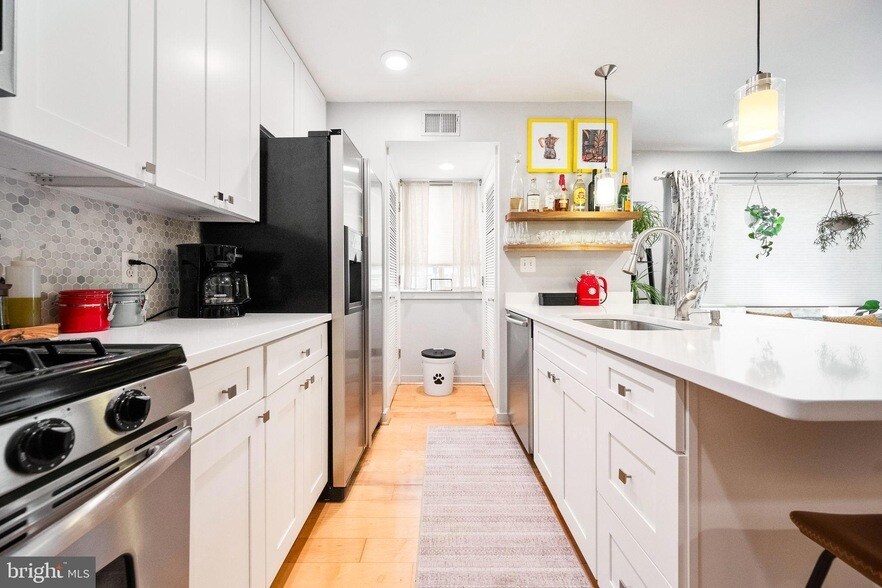 Welcome to this contemporary 2 bedrooms, 1 bathroom condo in the sought-after Mercury building. This unit boasts an open layout, two spacious bedrooms, and beautiful hardwood flooring throughout. Flooded with natural light from oversized windows, this home also features a private balcony, perfect for relaxing or entertaining. Best of all, a dedicated parking space is included at no extra charge. The updated open kitchen, featuring stainless steel appliances, quartz countertops, and an island with breakfast bar seating. The primary bedroom offers a walk-in closet with custom shelving, providing ample storage. For added convenience, an in-unit washer/dryer combo is included. Situated in the vibrant Columbia Heights neighborhood, you're just blocks from shopping, dining, and nightlife. Enjoy easy access to Meridian Hill Park, Harris Teeter, Trader Joe s, and more. Ideally located within walking distance of the Columbia Heights and U Street Metro stations. Don't miss this fantastic opportunity, schedule your showing today!
