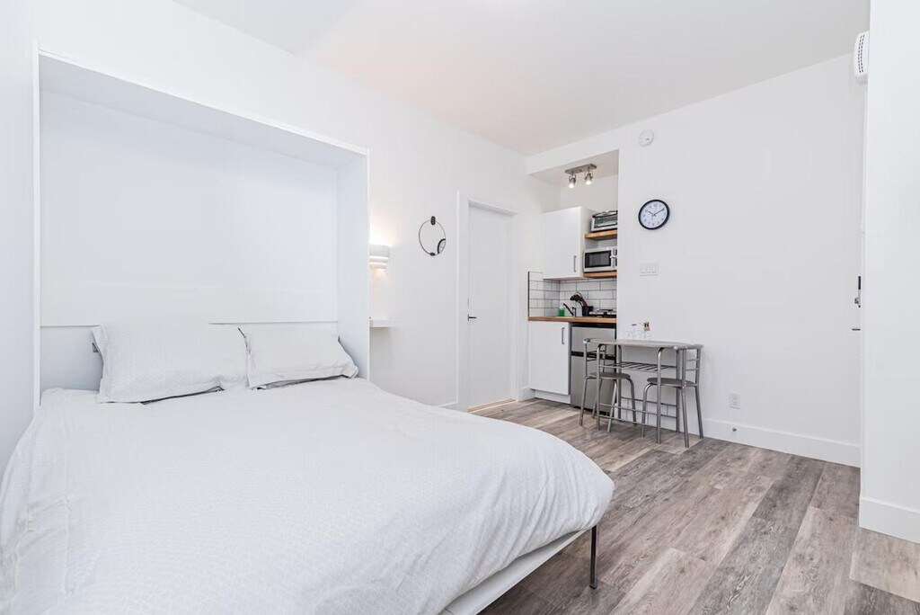 Welcome to this charming apartment nestled in a vibrant neighborhood near UQAM University, at the heart of Montreal's bustling core. Surrounded by numerous restaurants, cafes, and shops, convenience greets you at every turn. Recently renovated, this apartment provides an ideal haven for professionals, newcomers, and students seeking a temporary abode in Montreal. Whether you're staying for a few weeks or months, this dynamic city will feel like home. Located in a 3-floor building with stairs, this apartment offers easy access to the vibrant life of the city. This lovely studio apartment is located near UQAM University, just steps away from the Village, one of the city’s most charming areas. It features a studio room with a queen bed and one bathroom. Nestled in a vibrant neighborhood near UQAM University, this apartment is surrounded by numerous restaurants, cafes, and shops. Its central location offers easy access to Montreal's bustling core and makes it an ideal spot for exploring the city's attractions. The building has no elevators, only stairs, which may be a consideration for those with mobility concerns.