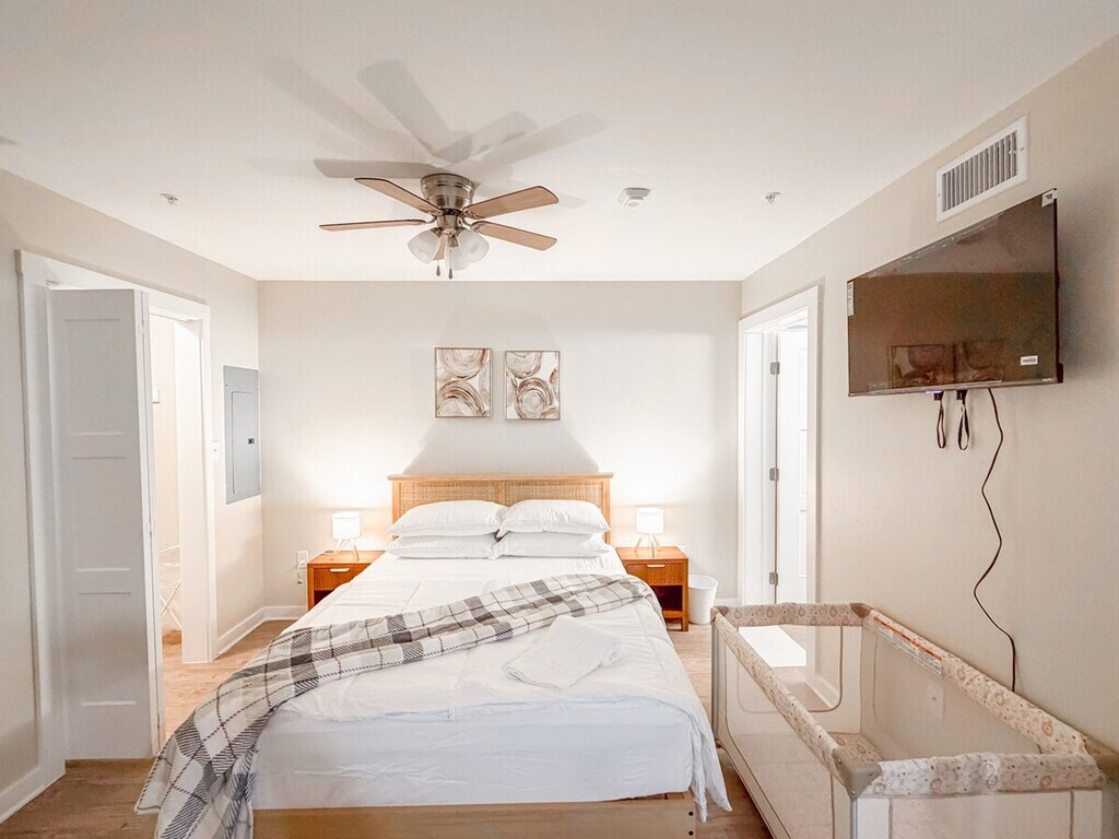 The advertised rate of $5,901/month is the lowest available price, based on a 1 month(s) stay with a move-in date of April 25, 2026. Rates vary depending on the duration of stay, season, and other parameters. For exact pricing and additional pricing components, please visit our website and enter your desired move-in and move-out dates. The rate is applicable when billed upfront; it can be higher if billed in multiple payments. Feel at home in this cozy 1-bedroom, 1-bathroom apartment in Grand Prairie, Texas, perfectly situated for easy access to everything the area has to offer. Experience modern comfort in this 1-bedroom getaway featuring carefully curated amenities and stylish wooden floors throughout. The open-concept design seamlessly blends the living, dining, and kitchen areas. The kitchen is fully equipped with a microwave, stove, oven, refrigerator/freezer, and dishwasher, as well as a toaster, coffee machine, kettle, and Brita water filter. The bathroom is spacious and fully stocked with a bath with shower, wash basin, mirror, toilet, towels, and essential toiletries. High-speed Wi-Fi and free parking are available. Conveniently situated by 360 North Tollway, a historic Grand Prairie route, this apartment is within walking distance of a vibrant public square, shopping streets, and local restaurants. Grand Prairie Premium Outlets are 7.4 miles away and Lincoln Square is 3.5 miles away. River Legacy Parks East is 1.8 miles away and Six Flags is 1.6 miles away. Dallas Love Field Airport is 19 miles away and Dallas Fort Worth International Airport is 7.6 miles away. Concentra Urgent Care is 1.5 miles away, Baylor Scott & White is 8 miles away, Surepoint Emergency Center is 4.5 miles away, Mid Cities Animal Urgent Care is 7 miles away, and Medical City Dallas Hospital is 7.9 miles away. Highway 360 North and Interstate I30 are 2.3 miles away. This apartment has air conditioning, heating, a ceiling fan, and a washer/dryer. Includes an office desk with chair. [SI]