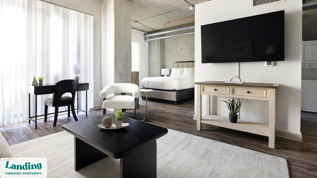 Landing offers flexible lease terms from weeks to months. Please always visit our website or contact us for the latest pricing & availability. Stay longer, save more: 6-Month Minimum base rent: starts at $1663/mo 12-Month Minimum base rent: starts at $1663/mo Landing offers flexible leases across a network of over 35,000 fully-furnished apartments throughout 375+ cities so you can rent on your terms, practically anywhere, and avoid the hassle of paying deposits or application fees. Visit to learn about all the benefits of a Landing membership, see our competitive up-to-date pricing, explore available apartments, take virtual tours, and make reservations online without jumping through traditional rental hoops. Landing's apartments at Cortland on Blake are designed for comfortable, easy living, with the ability to stay as long as you like. Experience living with Landing Every apartment is outfitted with all the modern essentials including: custom-designed furnishings, a fully-equipped kitchen with deluxe stainless steel appliances, a gourmet coffee maker, premium linens, Smart TVs, and incredibly fast, reliable internet for working from home. When you live with Landing, you'll enjoy a hassle-free experience with the added benefit of 24/7 access to our dedicated member experience team. Some of the nitty-gritty: a background check and proof of income are required; we're completely smoke-free; bundled utility packages and pricing vary based on length of stay; pet-friendly options available; listed price reflects a 12-month minimum stay.