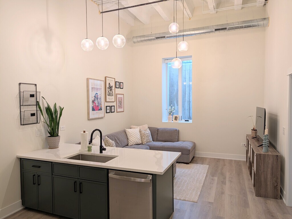 Welcome to luxury living in a truly unique space! Stunning loft blends historic charm with modern finishes, located in a beautifully restored former temple in downtown Evanston. Soaring 14' ceilings. Gorgeous kitchen with 42' soft close cabinets, quartz countertop and backsplash, stainless steel appliances. Building boasts a fitness center, bike room, business center with conference room, and resident lounge. Ideally located on tree lined residential street, yet only two blocks to the heart of downtown Evanston shops and restaurants, Purple Line, and UPN Metra station.