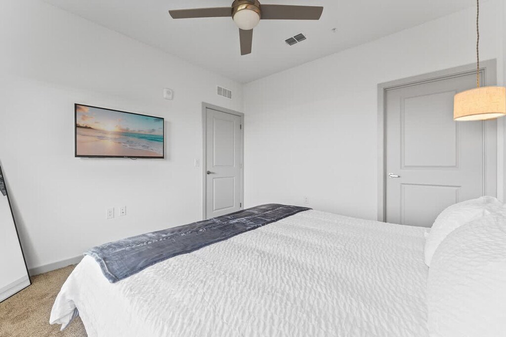 Feel at home in this perfectly located apartment, just 10 minutes from Disney Parks and a short drive to Universal Studios. This cozy space sleeps four people and offers a peaceful retreat with all the comforts of home. The apartment features a living room with a queen-size sofa bed and a 50" smart TV. The fully equipped kitchen includes a stove, microwave, refrigerator, coffee maker, dishwasher, cookware, utensils, and a dining table with four chairs. There is also an in-unit washer and dryer for your convenience. The bathroom offers a relaxing bathtub and shower, along with complimentary toiletries such as shampoo, conditioner, shower gel, hand soap, towels, and a hairdryer. Complimentary parking is available for up to three cars. An EV charger is available for electric vehicles, subject to availability, with a fee applied when used. Enjoy the vibrant shops, restaurants, and bars in the local area, all within a 5-minute drive or walking distance. You're also close enough to hear Magic Kingdom fireworks at night! Pets are welcome, but some breed restrictions apply. Quiet hours are between 10 PM and 8 AM. [SI]