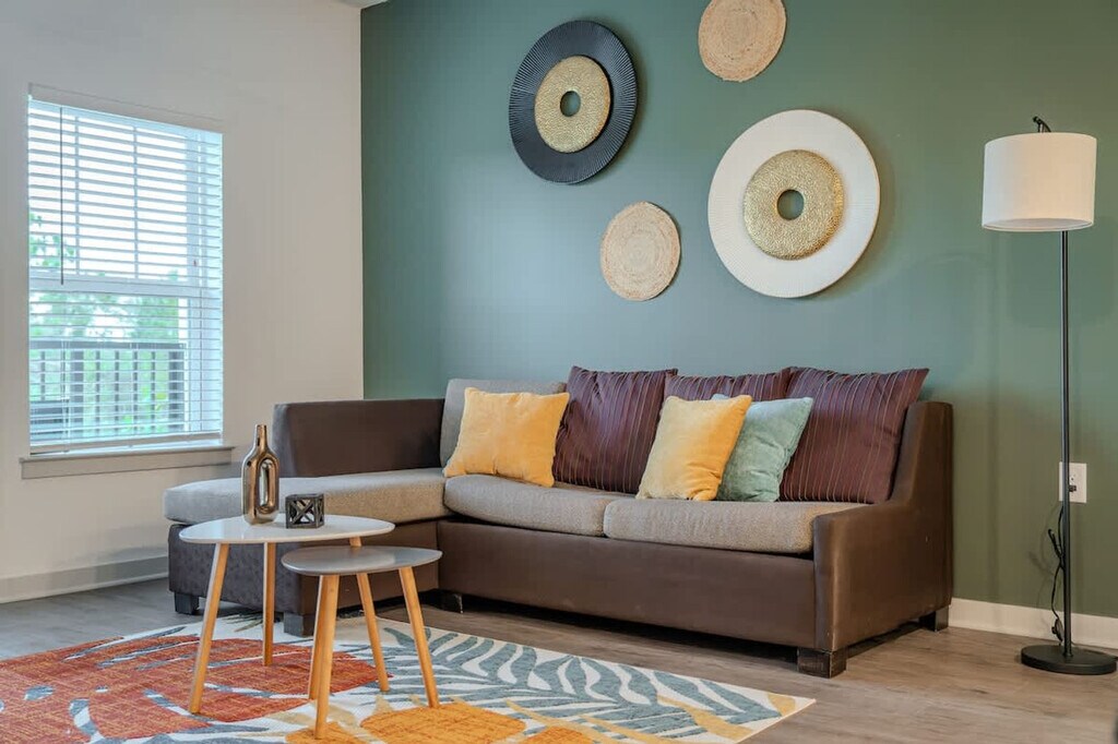 Feel at home in this perfectly located apartment in Bay Lake, just 10 minutes from Disney World. This property sleeps four people and offers a peaceful retreat with all the comforts of home. The apartment features a fully equipped kitchen with a stove, microwave, refrigerator, coffee maker, dishwasher, cookware, and utensils. For your convenience, there is also an in-unit washer and dryer. Enjoy a relaxing bathtub and shower with complimentary toiletries, including shampoo, conditioner, shower gel, hand soap, towels, and a hairdryer. The living room offers a full XL sofa bed and a 55” smart TV, while the bedroom features a plush queen-size bed and a 43” smart TV. There is also a walk-in closet with hangers, an iron, and an ironing board. Complimentary parking is available for up to three cars. An EV paid charger is present on location, but availability cannot be guaranteed. Nestled in the heart of Bay Lake, this apartment is minutes away from theme parks, dining, and recreational activities. Disney World is a mere 10-minute drive away, and Universal Studios/Island of Adventure and SeaWorld are also easily accessible. The Tibet-Butler Nature Preserve and Bay Lake are a short drive away, offering scenic views and tranquil moments. Many dining and shopping areas are within walking distance, including Target, Ross, and Publix supermarket. Orlando International Airport (MCO) is a 30-minute drive away. Quiet hours are between 10 PM and 8 AM. Pets are welcome, but some breed restrictions apply. Check-in time is at 4 PM, and early check-ins can be arranged when possible. [SI]
