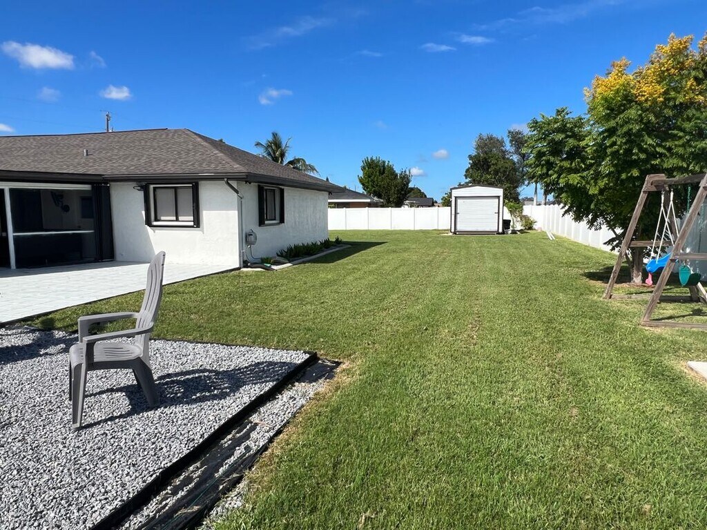 Welcome to this charming single-family home nestled in the Viscaya- Prado area of Cape Coral, FL. This beautifully presented property boasts 3 generous bedrooms, 2 bathrooms and a converted garage for a home office or guest space. The property features a spacious open floor plan, ushering in an air of sophistication and ease. Gallery kitchen overlooking a large pavered patio, outdoor kitchen and fireplace. Fenced in yard offers plenty of space for your pup to exert energy and kids to play. Situated a stone's throw away from many restaurants and stores, and in close proximity to several schools and Cape Coral Hospital, this property is perfectly poised for convenience and accessibility. Take the leap towards a more comfortable lifestyle. Pets are allowed with a non refundable pet fee of $250 per pet.