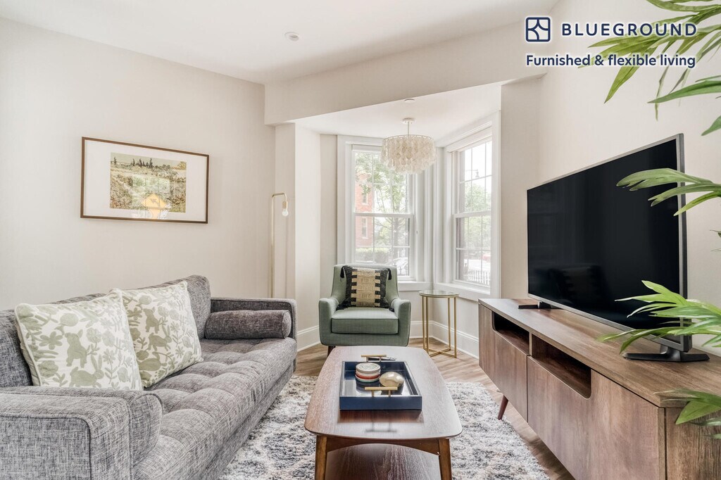 Feel at home wherever you choose to live with Blueground. You’ll love this sophisticated Cardozo furnished one bedroom townhouse with its modern decor, fully equipped kitchen, and cozy living room. Ideally located, you’re close to all the best that Washington, D.C. has to offer! (ID #WDC841) The advertised rate of $2,230/month is the lowest available price, based on a 6 month(s) and 4 day(s) stay with a move-in date of August 3, 2026. If you’re looking for a 1-year stay, the rate is $2,540/month. Rates vary depending on the duration of stay, season, and other parameters. For exact pricing and additional pricing components, please visit our website and enter your desired move-in and move-out dates. The rate is applicable when billed upfront; it can be higher if billed in multiple payments. Brokers are welcome to reach out. Were you looking for an unfurnished lease? Try Blueground instead and upgrade from unfurnished to furnished living: - Furnished at rates comparable to unfurnished - No setup or furniture costs - save thousands - Move-in ready - save time, just bring your suitcase Designed with you in mind As with any Blueground townhouse, you’ll find a thoughtfully designed space complete with beautiful furniture and a fully equipped kitchen in this one bedroom property. And, thanks to our superior quality mattresses, luxury linens, and towels, you can relax knowing you’ll always feel comfortably at home. When you’re ready for some fun, you can take in the Washington, D.C. vibes or bring the entertainment to you with the premium wireless speaker or smart TV. This townhouse also offers in-townhouse laundry. Sleeping arrangements Queen Bed, 63in/160cm Amenities Building amenities unique to this one bedroom townhouse include an on-site: - Dryer - Washing machine Arrival and ongoing support The entire townhouse is yours to enjoy! Throughout your stay, you’ll have access to our Client Experience team through the Blueground App. You can schedule additional cleanings, submit maintenance requests, and view our neighborhood recommendations with just a few taps. We’ll share all details upon confirmation of your stay. Ideally Located This furnished Blueground rental is located in Cardozo, a neighborhood that is also referred to as U Street West. There's a huge variety of bars, clubs, and restaurants in this area. Head to the intersection of 9th and U Streets to begin the cocktail crawl of a lifetime. You will also find a huge variety of cuisine, from fast casual to Ethiopian to rooftop beer gardens serving bratwurst. This historic area played a huge role during the Civil Rights Movement of the 1960s. Cardozo is also the setting for the African American Civil War Museum. The neighborhood is served by the DC Metro's Green and Yellow lines for quick access to the rest of the city. Other things to note This Blueground townhouse has flexible lease options, allowing you to book it for one month, a year, or more. Please keep in mind that this is a walk up building. We take great pride in ensuring every photo displayed is shot in our own units with our actual furnishings. That said, we regularly refresh our decor and furniture arrangement, which may differ from what’s pictured. [SI]