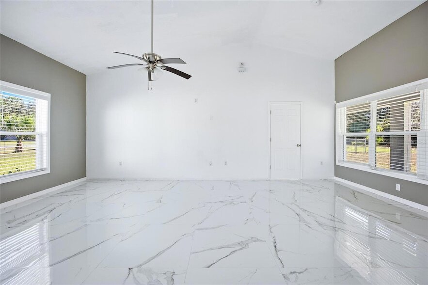 Discover your next perfect rental home - modern, luxurious retreat built in 2023 and designed for comfort, style, and easy living. This spacious 3-bedroom, 2-bath property offers 1,926 sq ft of beautifully finished interior space on a peaceful 0.34-acre lot in the highly desired Marion Oaks community.Set on a former golf course lot, you'll enjoy exceptional privacy with no rear neighbors and relaxing views right from your backyard. Inside, the home features soaring 14-foot ceilings, elegant tile flooring, and an open-concept layout that feels bright, airy, and welcoming. The chef-inspired kitchen comes complete with stainless steel appliances, a sleek tile backsplash, and plenty of counter space perfect for everyday meals or entertaining.Practical features like public water, septic, and deed-restricted living with no HOA fees mean a low-maintenance lifestyle for renters. Marion Oaks offers a host of convenient nearby amenities, including a shopping plaza, pharmacy, medical services, parks, a splash pad, and optional community activities for a small annual fee.If you're looking for a rental that offers modern comfort, privacy, and a peaceful setting, this home delivers. Schedule a viewing today and experience the elevated lifestyle waiting for you in Marion Oaks!