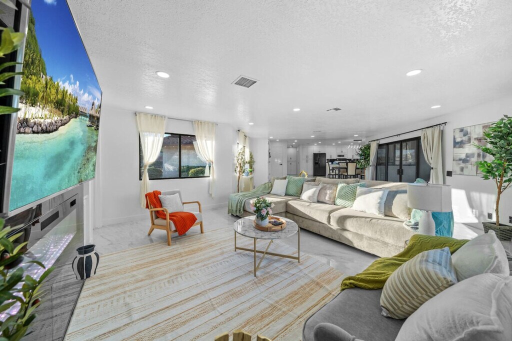 Welcome to our spacious 2,500 sqft family home in Jamul, offering stunning mountain views from every room. This ground-floor residence features a walk-in shower and provides ample parking for up to 10 vehicles in the front yard and garage. Enjoy the surrounding yard with a jetted tub and grill, and feel at home with your pets, as they are welcome here. Located just 5 minutes from casinos, vineyards, and scenic mountain trails, this home is perfect for your next getaway. The living area is air-conditioned and features an 80-inch flat-screen smart TV, complete with cable and Smart Roku for streaming services like Netflix, YouTube, and Disney+. Relax on the comfortable couches or enjoy some gaming with the available console. The modern kitchen is fully equipped with all necessary appliances, including a coffee machine, and is stocked with essentials like coffee, cooking oil, sugar, and salt. Dining tables and chairs are available both inside and outside, accommodating up to 16 people for your culinary gatherings. Pets are welcome in this home. Parking is available for up to 10 vehicles in the front yard and garage, providing convenience and security. For a small fee, early check-in at 1 PM or late check-out at 1 PM is available, as extra cleaners are needed to expedite the process. If the propane tank for the gas grill is low, guests will be reimbursed for refilling it. Additional guests beyond the platform limit can be accommodated for a small fee, with each visitor counted as half a guest. Nestled in the scenic area of Jamul, California, this peaceful retreat offers a perfect blend of seclusion and accessibility. Enjoy sweeping mountain views, fresh air, and unforgettable sunsets in this quiet countryside neighborhood. Outdoor enthusiasts will love the nearby hiking and nature spots, including McGinty Mountain Trail and Hollenbeck Canyon Wildlife Area. Jamul is also close to beautiful lakes and serene drives, showcasing Southern California’s natural beauty. You're just a short drive from a variety of dining options in Rancho San Diego and within easy reach of San Diego’s top attractions like the San Diego Zoo, Balboa Park, and La Jolla. This home is equipped with a front door security camera and an outdoor noise decibel monitor to ensure a peaceful environment. Unauthorized late check-outs may incur a fee twice the nightly rate due to cleaning and scheduling disruptions. Each unauthorized guest or pet may incur a $100 per person/pet per night fee. Smoking is strictly prohibited inside and outside the home to maintain fresh air for all guests and neighbors. Excessive noise may lead to a $1,000 violation fee, as it could risk the suspension of the listing. Check-out is by 11:00 AM unless a late check-out fee has been paid. For those working remotely, the home offers a choice of desks and chairs both inside and outside, along with ATT 5G fast Wi-Fi, making it easy to host online meetings or share large files. A laptop computer is not included. [SI]