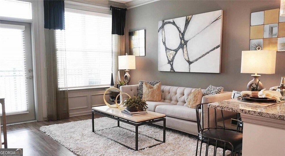 Close to the Battery. New retail stores on site. New Kroger next door. Speakeasy Lounge, Resort-Style Swimming Pool, Controlled Access Parking Garage, Courtyard w/Grilling Stations, Outdoor Dining Area, 24-Hour Fitness Center, Yoga Room, Social Lounge, Game Room, Conference Room with Free Wi-Fi. Putting Green, Bike Lounge. Dog Wash Station.