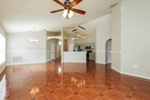 Please note, our homes are available on a first-come, first-serve basis and are not reserved until the lease is signed by all applicants and security deposits are collected. This home features Progress Smart Home - Progress Residential's smart home app, which allows you to control the home securely from any of your devices. Learn more at Want to tour on your own? Click the “Self Tour” button on this home’s listing or call to register for a self-guided showing at a time that works best for you. You'll enjoy relaxing on the covered patio of this four-bedroom, two-bathroom rental home in Orlando, Florida. Gorgeous flooring runs through the open main living areas of this abode, providing a dynamic design element. The living room includes a chandelier, a ceiling fan with a light, large side-facing windows, and a sliding door to the backyard, all contributing varying light options. Enjoy the ample cabinet space, stainless steel appliances, and visually-appealing triangular island in the kitchen, and a laundry room that's steps away. The main bedroom suite has two closets, making selecting outfits easy, and an en suite bathroom with a dual sink vanity and bathtub. Make plans for a tour today.