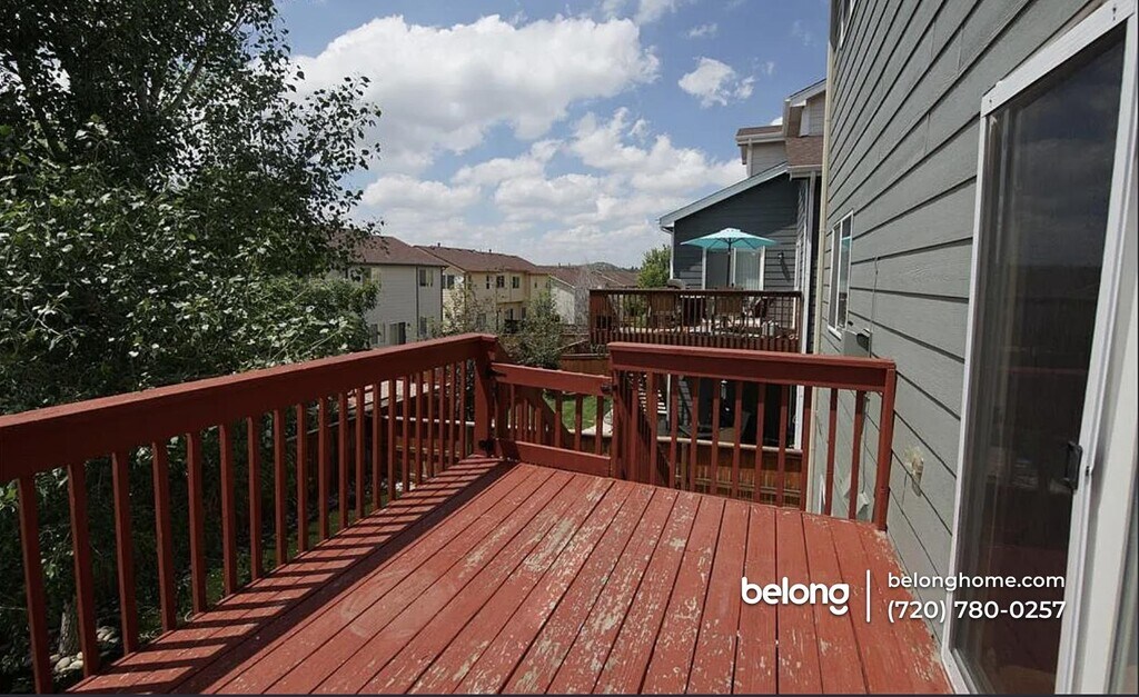 Positioned within a scenic Castle Rock setting, this 4-bedroom, 2.5-bath home is organized around an open main living zone with clear spatial transitions and defined gathering areas. Wood-style flooring extends across the primary living space, where a corner fireplace with a stone surround anchors the room and introduces a central visual focal point. Large sliding glass doors establish a direct connection to the elevated deck, framing natural light and outward views. The kitchen is arranged in a U-shaped layout with an island positioned to support circulation and task efficiency. Dark cabinetry contrasts with lighter wall finishes, while stainless steel appliances and expansive counter surfaces define the workspace. Nearby, a dedicated dining area is set beneath a modern chandelier, proportioned to accommodate a full dining setup. Located in Castle Rock, the home sits near everyday conveniences at Promenade at Castle Rock and the Outlets at Castle Rock, along with local dining and cafés. Outdoor access includes Rock Park and Ridgeline Open Space, offering trails and panoramic Front Range views. *One pet cat is allowed. Zillow deposit for this Belong home includes the $500 pet fee in case of pets. *Fireplace is for decorative use only and cannot be used without consent from Belong. *Our homes come as-is with all essentials in working order. Want upgrades? Request it through the Belong app, and our trusted pros will take care of the rest!