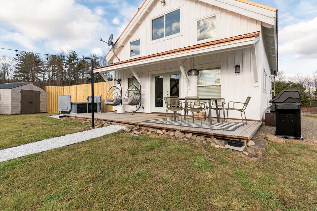 Feel at home in this professionally designed bar(n) located under 15 minutes from downtown Ithaca, Cornell, and Ithaca College. This apartment features beautiful furniture, a hot tub, campfire, and pizza oven. Dogs are welcome when added to the reservation. This apartment is located under 15 minutes from downtown Ithaca, Cornell, and Ithaca College. Quiet hours are between 10:00 PM and 7:00 AM. No cats or other pets are allowed. Includes a work from home set-up. [SI]