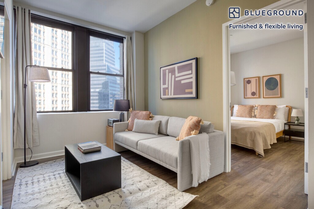 Discover the best of New York, with this two bedroom apartment in Financial District with views over the city. It’ll be easy to simply show up and start living in this furnished apartment with its fully equipped kitchen, living room, and our dedicated, on-the-ground support. (ID #NYC1431) The advertised rate of $5,680/month is the lowest available price, based on a 6 month(s) and 4 day(s) stay with a move-in date of August 2, 2026. If you’re looking for a 1-year stay, the rate is $5,990/month. Rates vary depending on the duration of stay, season, and other parameters. For exact pricing and additional pricing components, please visit our website and enter your desired move-in and move-out dates. The rate is applicable when billed upfront; it can be higher if billed in multiple payments. Brokers are welcome to reach out. Were you looking for an unfurnished lease? Try Blueground instead and upgrade from unfurnished to furnished living: - Furnished at rates comparable to unfurnished - No setup or furniture costs - save thousands - Move-in ready - save time, just bring your suitcase Designed with you in mind Gorgeous furniture, fully equipped kitchen, smart TV, and a premium wireless speaker are just a few of the amenities you’ll find inside this two bedroom apartment. Ideally located in New York, you’ll find a lot to love outside as well. When you’re ready to relax, you’ll be happy to discover every Blueground bedroom comes with superior quality mattresses, luxury linens, and cozy towels. We handle everything so you can simply show up and start living. This apartment also offers in-floor laundry. Sleeping arrangements Queen Bed, 63in/160cm Queen Bed, 63in/160cm Amenities Building amenities unique to this two bedroom apartment include an on-site: - Doorman - Dryer of floor - Elevator - Washing machine on floor - Lounge - Pets allowed Arrival and ongoing support The entire apartment is yours to enjoy! Throughout your stay, you’ll have access to our Client Experience team through the Blueground App. You can schedule additional cleanings, submit maintenance requests, and view our neighborhood recommendations with just a few taps. We’ll share all details upon confirmation of your stay. Ideally Located This furnished apartment is located in the Financial District, also known as FiDi. Home to Wall Street, One World Trade Center, the South Street Seaport, and Bowling Green it is a constant hub of activity. During the week the sidewalk is always bustling and the restaurants are filled with professionals. The glittering skyscrapers and well-known landmarks make this one of the city’s most recognizable and historic neighborhoods. By subway, Times Square is about 20 minutes away. Other things to note Building amenities may have an extra cost. This Blueground apartment has flexible lease options, allowing you to book it for one month, a year, or more. Pets are welcome, though weight limits and breed restrictions apply and may incur fees. Brokes CYOF. We take great pride in ensuring every photo displayed is shot in our own units with our actual furnishings. That said, we regularly refresh our decor and furniture arrangement, which may differ from what’s pictured. [SI]