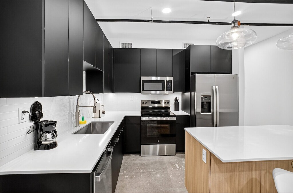 The advertised rate of $2,650/month is the lowest available price, based on a 1 month(s) stay with a move-in date of April 14, 2026. Rates vary depending on the duration of stay, season, and other parameters. For exact pricing and additional pricing components, please visit our website and enter your desired move-in and move-out dates. The rate is applicable when billed upfront; it can be higher if billed in multiple payments. Feel at home in this stylish 1-bedroom loft inside Tulsa’s historic Beacon Building, just one block from the BOK Center. Enjoy skyline views and 12-foot ceilings. This modern industrial loft features an open layout with a cozy living area with a Smart TV and high-speed Wi-Fi, and a fully stocked kitchen. You’ll also have a combo washer/dryer in-unit and climate control. Paid parking is available for $10 per night on weekdays and $15 per night on weekends. Centrally located in Downtown Tulsa’s Entertainment District, this apartment is within walking distance of Tulsa Club, The Vault, top restaurants, and nightlife. The BOK Center is one block away, Cain’s Ballroom is about 13 minutes walking or 3–4 minutes driving, the Cox Convention Center is 3 blocks away, and the Tulsa Performing Arts Center is an 8-minute walk. Guthrie Green is a 10-minute walk and The Gathering Place is a 10-minute drive. Nearby attractions include Philbrook Downtown, Woody Guthrie Center, and Greenwood Rising Museum. A $150 penalty will be imposed if the camera is disconnected, tampered with, or relocated from its original position. [SI]