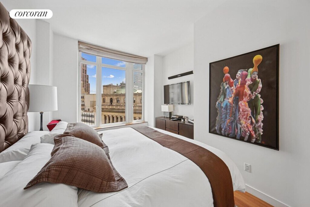 Hi-Floor FURNISHED Corner 2 Bedroom! Capturing postcard views of New York Harbor and historic landmark skyscrapers, #28E at 15 William Street offers a very unique living experience for the discerning downtown resident. Exceptionally laid out with split wing bedrooms, gracious entry foyer, and generous 25" living room. Massive master suite with distinctive louvered en suite bathroom partition, well-proportioned second bedroom & full bathroom, and a sleek Sub-Zero/Miele equipped kitchen with dining alcove. Finished with solid wide-plank oak floors throughout, two walk-in closets, washer/dryer, tasteful window treatments, and a full complement of designer furnishings and decor. Offered fully furnished onlyRecognized as one of the finest built and well-appointed condominiums in the neighborhood, 15 William Street boasts an attentive 24 hour staff and a rich amenity package including: State of the art Fitness center complete with 50" pool, sauna, yoga room, squash & basketball courts, children's play area, movie screening theater, dog run, and a magnificent roof deck & penthouse lounge for residents to enjoy. Don't miss out!! Fees:Application Fee (Non-Refundable, Due to the Building) $300Application Processing Fee (Non-Refundable) $500Dog Fee (Non-Refundable, Only if Applicable) $500 per dogBackground /Credit Check Fee (Non-Refundable, Required ) $25 + Tax per applicantFirst Month: 9,500Security Deposit: 9,500