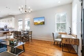 Experience New Orleans in style with this spacious 3-bedroom, 2-bathroom condo located just a block from the St. Charles Streetcar and a quick 5-minute drive to the historic French Quarter. Perfect for family gatherings and special celebrations, this residence offers a gateway to the best of the city, from the French Quarter's live music scene to the vibrant nightlife of the Central Business District. The Caesars Superdome and Smoothie King Center are also within walking distance or a quick Lyft ride away, ensuring you have New Orleans at your fingertips. This modern yet charming condo features a front porch overlooking a courtyard, access to a shared pool, and a gated, private courtyard area for guests. The fully equipped chef’s kitchen with stainless steel appliances and a dining area by the fireplace make it perfect for entertaining. Large windows provide abundant natural light, and flat-screen TVs in the living room and bedrooms offer modern conveniences. Free street parking is available on a first-come, first-served basis, though there is no dedicated parking. For an additional fee, daily housekeeping services are available upon request. Located just a block from public transportation, including the St. Charles Streetcar, this condo offers easy access to the Garden District, French Quarter, and Central Business District. It's a short ride to the French Quarter’s jazz clubs, eateries, bars, and bistros. Magazine Street’s renowned dining and nightlife are just 2 miles away, and Harrah's New Orleans Casino is 1.6 miles from your condo. The Mercedes-Benz Superdome, Audubon Aquarium, and House of Blues are under 2 miles away, and Louis Armstrong New Orleans International Airport is 24 miles from the condo. The nearest neighborhood Walgreens is only a 1-minute walk away. The condo is on the 2nd floor with no elevator access. Video surveillance may be used in public areas. Gatherings of more than 6 people, including both overnight guests and visitors, are not allowed and may be subject to eviction. Extra guests and visitors are not permitted without management consent, and the number of overnight guests cannot exceed the maximum occupancy. House parties and illegal substances are strictly prohibited and grounds for immediate eviction, with violators charged a $500 fine. The home has a maximum occupancy limit, and renters who exceed this limit and falsify occupancy information at the time of reservation are subject to eviction, with violators charged a $200 to $500 fine. No smoking is allowed in the unit or on the balcony, with violations incurring a $250 fine plus cleaning costs. Pets are not allowed, and violation of the pet policy may result in a $500 fine plus cleaning expenses. Quiet hours are observed from 9 pm to 8 am, with violators charged a $200 fine. Any exceptions to the rules must be approved in writing in advance. Rates, terms, and conditions are subject to change without notice. Guests must be at least 21 years of age to make a reservation, and local resident restrictions apply, with guests residing within a 100-mile radius required to contact the host before booking. For same-day late check-ins, host approval is needed before booking. We are not responsible for any accidents, injuries, or stolen or damaged items that occur while on the premises, its facilities, or parking lots.