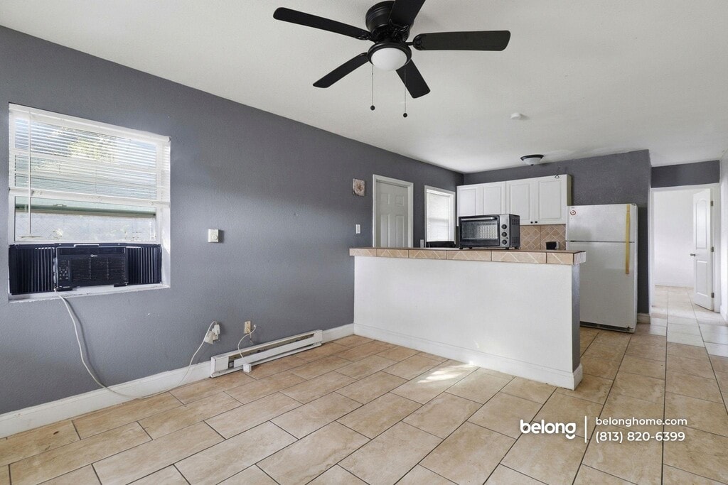 This thoughtfully laid out 1-bedroom, 1-bath unit offers a calm, practical setting defined by tile flooring and a straightforward flow between living spaces. Neutral finishes and clean lines keep the interior feeling composed, while ceiling fans and windows support everyday comfort and natural light. The living area connects directly to the kitchen, creating a layout that feels easy to furnish and use. In the kitchen, white cabinetry and a tiled backsplash frame generous counter space suited for daily cooking. An open counter edge provides a natural spot for casual dining or added prep room, keeping the space functional and grounded. Bedroom proportions allow space for rest and storage. Meanwhile, the bathroom features a walk-in tiled shower, a vanity with storage, and a window that brings in light and ventilation. Set in a central Clearwater location, this address places you close to daily conveniences and outdoor recreation. Grocery options such as Publix and Winn-Dixie are nearby, along with local dining and cafes along Drew Street. Clearwater Mall offers additional shopping, while Coachman Park and Clearwater Beach provide access to green space and waterfront activities just a short drive away. *Our homes come as-is with all essentials in working order. Want upgrades? Request it through the Belong app, and our trusted pros will take care of the rest!