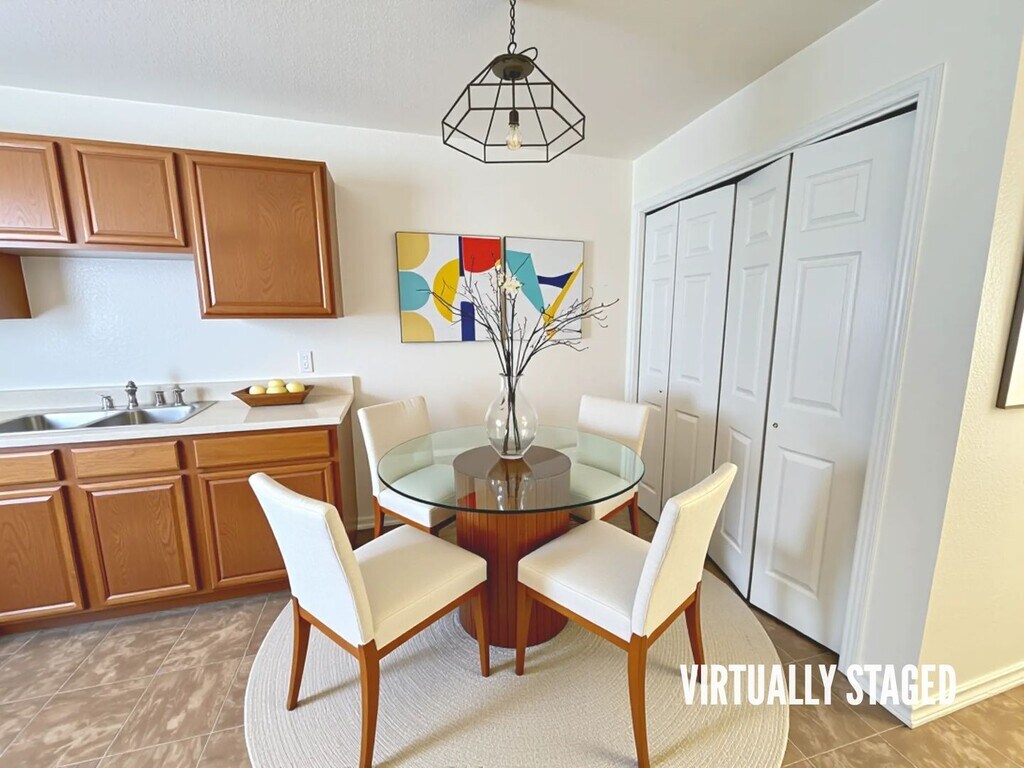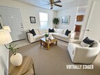 View 360 Virtual Tour: 2-bedroom 1-bath duplex townhome with carpet in the bedrooms and tile flooring in the living room and kitchen. The kitchen includes all white appliances and offers a clean, functional layout. Comfortable space with a practical design. Come by our office to see this property today. Disclaimer: The furnishings or enhancements shown are AI-generated and intended for inspiration only. They may not reflect the actual scale, condition, or current features of the property.
