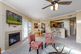 Welcome to Villa Zen, a serene condo located in the sought-after "Signature" complex of North Scottsdale. This 2-bedroom, 2-bath apartment is situated on the 2nd floor of a 2-story building, offering a comfortable retreat for up to four guests. The master bedroom features a king-size bed, TV, attached full bath, walk-in closet, and a sliding door to the patio. The second guest room includes a queen bed and TV with a walk-in closet. The living area, equipped with a large TV, opens to the patio, dining room, and a fully stocked kitchen. Enjoy the convenience of a full-size washer and dryer in the unit. All linens, bath and pool towels are provided. Enjoy free Wi-Fi and cable TV during your stay. The community center, just a minute's walk from your front door, offers a heated pool and spa, fitness room, locker rooms, steam room, sauna, library, business center, common area living room with television and full kitchen, BBQ area, and fire-pit. The condo is within walking distance to two grocery stores, Starbucks, various restaurants, and more. With easy access to Loop 101 Highway, WestWorld, Kierland Commons, Scottsdale Quarter, TPC Scottsdale, and McDowell Mountain Golf, as well as great hiking trails, you'll have everything you need nearby. Tennis courts, pickleball courts, and Horizon Park are just around the corner. No pets are allowed in the apartment. Guests are liable for any damages caused to the property. [SI]
