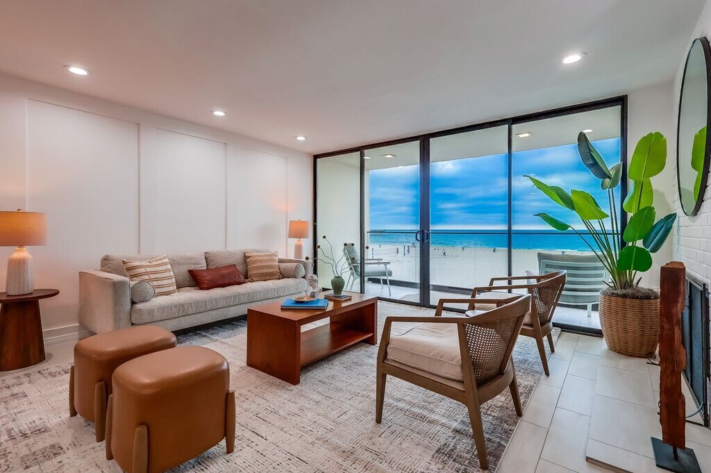 Pet Friendly Coastal Luxury on The Strand! Experience beachside living at its finest in this rare, 2-story penthouse along The Strand in Hermosa Beach. Enjoy unobstructed panoramic views of the Pacific Ocean and coastline from nearly every room. The spacious primary suite offers a private ocean-facing deck, while the open-concept living, dining, and kitchen areas flow seamlessly to a second private deck ideal for entertaining. Both bedrooms feature walk-in closets and custom cabinetry, with a private laundry room situated between them. Modern upgrades include central A/C, new finishes, recessed LED lighting, and sleek, contemporary design throughout. Additional highlights include a gated subterranean garage with two side-by-side parking spaces, private storage, and access to a beautifully maintained 90' common area patio for entertaining or relaxing outdoors. Just steps from the Hermosa Pier, fine dining, shopping, and Noble Park, this is a once-in-a-lifetime opportunity to live the dream in an iconic oceanfront residence.