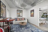 Unwind in this nostalgic detached suite, where you can feel at home in a space that sleeps four with two king bedrooms. Enjoy a full bathroom with dual sinks, 100% cotton, 500 thread count linens and towels, a fully equipped kitchen, and an open-concept living area. The living room features a 55” Smart TV, custom metal ceilings, and bold, vibrant décor. With direct access to a heated pool and jacuzzi, and surrounded by historic oak trees on six lush acres, this suite offers a unique retreat just minutes from beaches, shopping, and the airport. Welcome to Casa Ricardo — a vibrant two-bedroom suite with walk-out access to the heated pool and jacuzzi. Featuring two king bedrooms with memory foam mattresses, a stylish bathroom with dual sinks, and a fully equipped kitchen and living area, this retreat blends comfort with playful, Coca-Cola-inspired décor. Custom metal ceilings and bold design details make it truly one of a kind. High chair and playpen available on request. Set on six lush acres, this suite is part of the Hacienda Hermosa estate, which has been featured on a popular travel show as one of the world’s best rentals. All just minutes from Fort Myers Beach, Sanibel Island, shopping, dining, and RSW International Airport. Florida’s tropical climate means you may see insects, geckos, lizards, or other small critters, even in very clean homes. This is perfectly normal for the area. We do regular pest control, but understand this is part of the Florida experience. Refunds cannot be offered for sightings of insects or wildlife. The property may have scheduled pool or landscaping maintenance during your stay. Quiet hours are between 22:00 and 8:00. [SI]