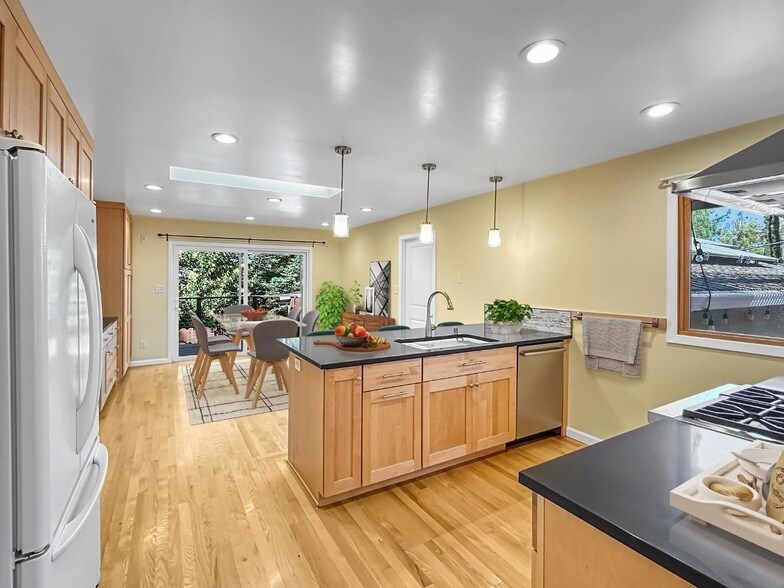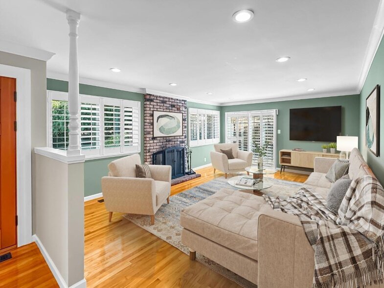 Nestled against Sharon Hills Park, this solid ranch-style home sits on a large, private flag lot in the desirable Las Lomitas school district. The light-filled 3-bedroom/2-bath main home features a formal living room with a fireplace, a sunny kitchen with quartz countertops and a breakfast bar, and a dining room that opens to a spacious deck. Enjoy fenced outdoor living on the large brick patio with a Jacuzzi, surrounded by mature trees for privacy. The property features a 324 sq ft air-conditioned accessory structure, complete with a full bathroom and a gas fireplace, making it ideal for a guest suite, office, or studio. Additional highlights include hardwood floors, plantation shutters, a 2-car garage with custom wood doors, solar, and a storage shed. A rare opportunity to rent a serene retreat close to top schools, shopping, and commute routes. Note: Home has been virtually staged.