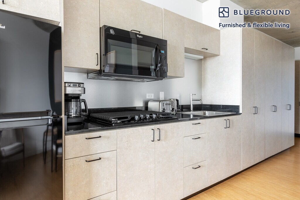 Discover the best of Chicago, with this studio apartment in Goose Island with views over the city. It’ll be easy to simply show up and start living in this airy furnished apartment with its fully equipped kitchen, beautiful living room, and our dedicated, on-the-ground support. (ID #CHI304) The advertised rate of $1,370/month is the lowest available price, based on a 2 month(s) and 14 day(s) stay with a move-in date of December 19, 2025. If you’re looking for a 1-year stay, the rate is $1,820/month. Rates vary depending on the duration of stay, season, and other parameters. For exact pricing and additional pricing components, please visit our website and enter your desired move-in and move-out dates. The rate is applicable when billed upfront; it can be higher if billed in multiple payments. Brokers are welcome to reach out. Were you looking for an unfurnished lease? Try Blueground instead and upgrade from unfurnished to furnished living: - Furnished at rates comparable to unfurnished - No setup or furniture costs - save thousands - Move-in ready - save time, just bring your suitcase Designed with you in mind As with any Blueground apartment, you’ll find a thoughtfully designed space complete with beautiful furniture and a fully equipped kitchen in this studio property. And, thanks to our superior quality mattresses, luxury linens, and towels, you can relax knowing you’ll always feel comfortably at home. When you’re ready for some fun, you can take in the Chicago vibes or bring the entertainment to you with the premium wireless speaker or smart TV. This apartment also offers in-apartment laundry. Sleeping arrangements Double Bed, 55in/140cm Amenities Building amenities unique to this studio apartment include an on-site: - Dryer - Elevator - Washing machine - Lounge Arrival and ongoing support The entire apartment is yours to enjoy! Throughout your stay, you’ll have access to our Client Experience team through the Blueground App. You can schedule additional cleanings, submit maintenance requests, and view our neighborhood recommendations with just a few taps. We’ll share all details upon confirmation of your stay. Other things to note Building amenities may have an extra cost. This Blueground apartment has flexible lease options, allowing you to book it for one month, a year, or more. We take great pride in ensuring every photo displayed is shot in our own units with our actual furnishings. That said, we regularly refresh our decor and furniture arrangement, which may differ from what’s pictured. Also note - This apartment faces the street - This apartment's central location means it can be noisy at times [SI]