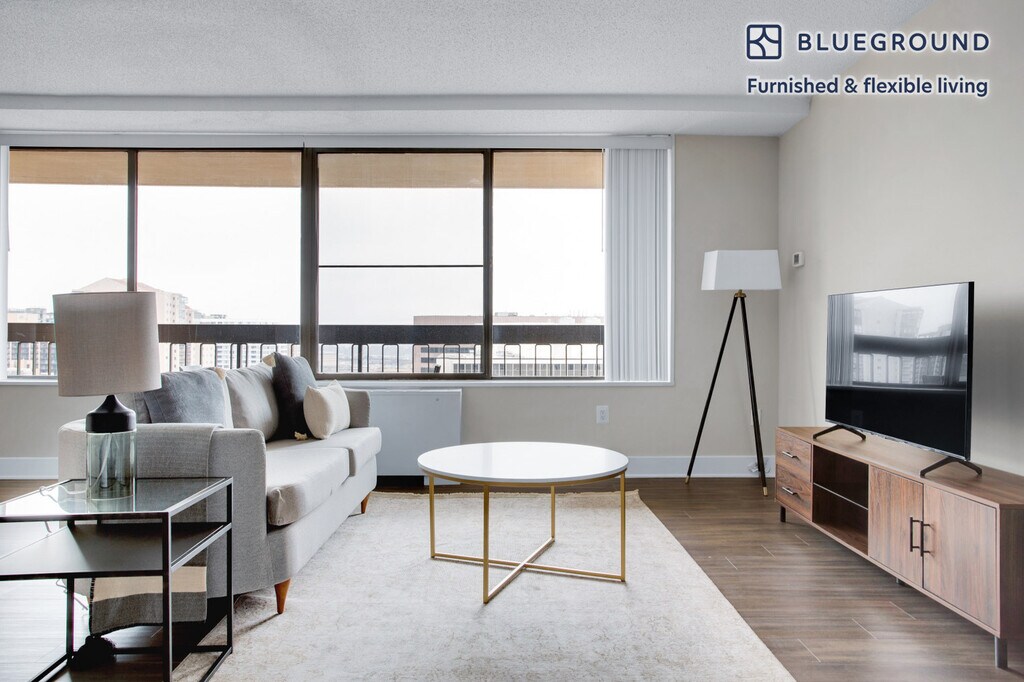 Feel at home wherever you choose to live with Blueground. You’ll love this bright Crystal City furnished one bedroom apartment with its modern decor, fully equipped kitchen, and comfortable living room. Ideally located, you’re close to all the best that Arlington has to offer! (ID #WDC443) The advertised rate of $2,370/month is the lowest available price, based on a 1 month(s) and 24 day(s) stay with a move-in date of January 11, 2026. If you’re looking for a 1-year stay, the rate is $2,860/month. Rates vary depending on the duration of stay, season, and other parameters. For exact pricing and additional pricing components, please visit our website and enter your desired move-in and move-out dates. The rate is applicable when billed upfront; it can be higher if billed in multiple payments. Brokers are welcome to reach out. Were you looking for an unfurnished lease? Try Blueground instead and upgrade from unfurnished to furnished living: - Furnished at rates comparable to unfurnished - No setup or furniture costs - save thousands - Move-in ready - save time, just bring your suitcase Designed with you in mind Thoughtfully designed with bespoke finishes, modern furnishings, and a fully equipped kitchen, you’ll enjoy that “I’m home” feeling with this Blueground apartment. Whether you’re lounging in your cozy living room streaming the latest and greatest entertainment on the smart TV or premium wireless speaker, or getting some well-earned rest on the superior quality mattress with luxury linens, you’ll fall in love with everything this Crystal City apartment has to offer. This apartment also offers in-apartment laundry. Sleeping arrangements King Bed, 70.8in/180cm Amenities Building amenities unique to this one bedroom apartment include an on-site: - Doorman - Dryer - Elevator - Washing machine - Parking - Pets allowed Arrival and ongoing support The entire apartment is yours to enjoy! Throughout your stay, you’ll have access to our Client Experience team through the Blueground App. You can schedule additional cleanings, submit maintenance requests, and view our neighborhood recommendations with just a few taps. We’ll share all details upon confirmation of your stay. Ideally Located This furnished apartment is located in Crystal City in Arlington, Virginia -- just outside of Washington DC. This dynamic neighborhood is home to many office buildings, including the headquarters of the United States Marshals Service, various Department of Defense offices, and even satellite offices for The Pentagon. Crystal City is also the location for Amazon's upcoming HQ2 project. In addition to being a business hub, the area is also known for its hopping dining and nightlife scenes. Crystal City is served by the Washington DC Metro's Blue and Yellow lines for easy access to the city. Other things to note This Blueground apartment has flexible lease options, allowing you to book it for one month, a year, or more. Pets are welcome, though weight limits and breed restrictions apply and may incur fees. Parking is offered based on availability and is subject to a fee. We take great pride in ensuring every photo displayed is shot in our own units with our actual furnishings. That said, we regularly refresh our decor and furniture arrangement, which may differ from what’s pictured. [SI]