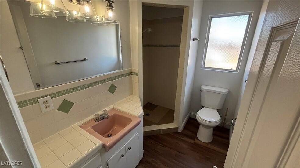Ready for some Vintage Vegas! You have found it! No cookie cutter community here- also no HOA- this a charming Single story - original countertops - all electric - attached garage - washer/dryer included - no carpet - custom colors - fireplace in living room - doors open to backyard from living room and primary bedroom - desert landscaping - one full bath - one 3/4 bath - 3rd room has built in shelves - SOLAR PANELS energy savings for an all electric home. MONTHLY RENT $2150.00 SEWER/TRASH $45.00, SOLAR fee $85.00, TOTAL MONTHLY PERIODIC RENT $2280.00 -Resident Benefit Package OPTIONAL but HIGHLY recommended $49.00 monthly includes, tenant liability insurance, air filters and PEST CONTROL