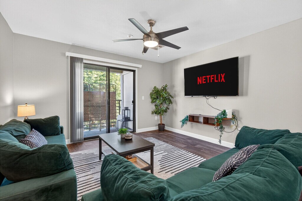 Feel at home in this brand-new 3-bedroom suite located near Surprise Stadium, Aquatic Center, and dining, perfect for sports trips and family getaways. This modern, spacious home is designed for comfort and fun. It features games, two streaming TVs, a fully equipped kitchen with brand-new appliances and stocked cookware, and a private patio. The bedrooms feature plush linens, cozy pillows, and ceiling fans. A washer and dryer are located near the bedrooms with detergent provided. Enjoy access to a pool, hot tub, fire pit lounge, work spaces, lounge, outdoor games, and a 24/7 gym. There is a $10 fee per guest after 6 guests. This home is ideally located near Surprise Stadium, Aquatic Center, and dining. Evidence of pets inside the property will result in a $100 fine charged to guests. There is a $250 surcharge charged to groups that are deceitful about the use of the house, and guests partying will be asked to vacate the property immediately without refund. You will be fined $500 if you violate the no-smoking policy. A surcharge of $100 per undeclared guest per night will be applied for unapproved guests. Early check-in or late check-out can be requested for a $30 fee. A $50 per hour penalty will be applied if you fail to check-out by 10 am or by the agreed upon check-out time. [SI]