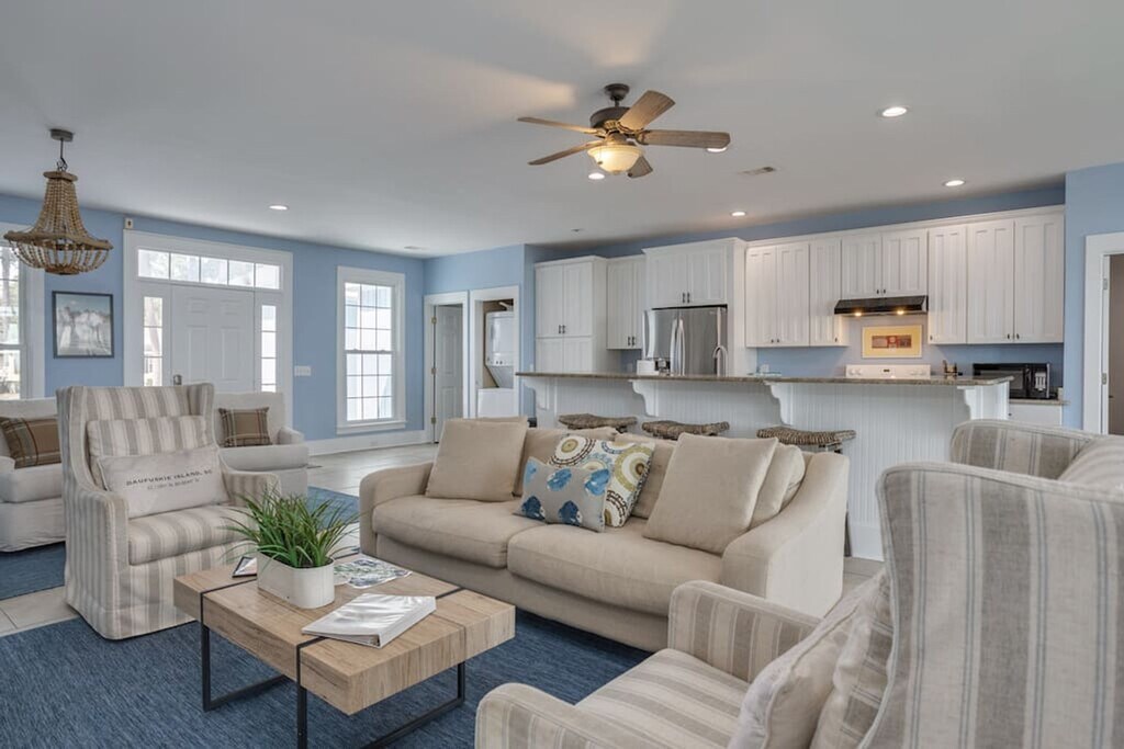 Looking for the ultimate island getaway? Discover this stunning oceanfront house on Daufuskie Island, recently renovated to comfortably accommodate up to 20 guests and 2 dogs. This 6-bedroom property is the perfect destination for your next family vacation or group getaway. Situated on one of the most gorgeous beaches on the east coast, the property offers the perfect balance of seclusion and adventure. Feel at home and make memories that will last a lifetime! This is the biggest house in all of the Melrose Cottage neighborhood, boasting ample space to accommodate up to 20 guests. The stunning property is perfect for those seeking a serene oasis with uninterrupted ocean views. Each bedroom is elegantly designed and furnished with plush bedding, ensuring a comfortable and rejuvenating night's sleep. The house features direct oceanfront private beach access, 6 bedrooms, and 6 bathrooms. Four of the bedrooms are in the main house, each with two king-size beds and private baths. Two detached mother-in-law suites come with their own private baths. Enjoy over 3400 square feet of space, a coffee bar, flat-screen TVs, and high-speed internet and cable TV, making it perfect for families and groups. Golf cart rentals are available and recommended. The golf cart(s) will be waiting at the house for you upon your arrival. Well-behaved canine family members are welcome but must be adult dogs, housetrained, must stay off of furniture, not be incessant barkers, and must be friendly towards humans and other dogs. Upon departure, the vacation home should look as though no pet had been in it, including the removal of pet hair. There is a pet fee of $250 for one dog and $450 for two dogs. 152 Avenue of the Oaks is located in the beautiful and peaceful neighborhood of Melrose on Daufuskie Island, SC. The area is known for its pristine beaches, picturesque oak trees, and charming Southern hospitality. You'll find plenty of opportunities for outdoor recreation, including fishing, boating, kayaking, and biking. There are also local shops and restaurants nearby. Whether you're looking to relax on the beach, explore the island's rich history, or enjoy some local cuisine, you'll find everything you need just a short distance from this oceanfront property. Experience the island's rich history and culture through its charming restaurants, art galleries, and boutiques. Indulge in local seafood delicacies or take a leisurely stroll along the beach. Accessible only by ferry, Daufuskie's isolation from the hustle and bustle of the mainland provides a one-of-its-kind experience for those looking to truly get away from it all! Contactless check-in is available. The pool is currently closed and will be open in May/June 2023. [SI]