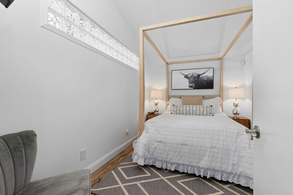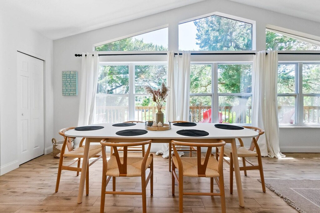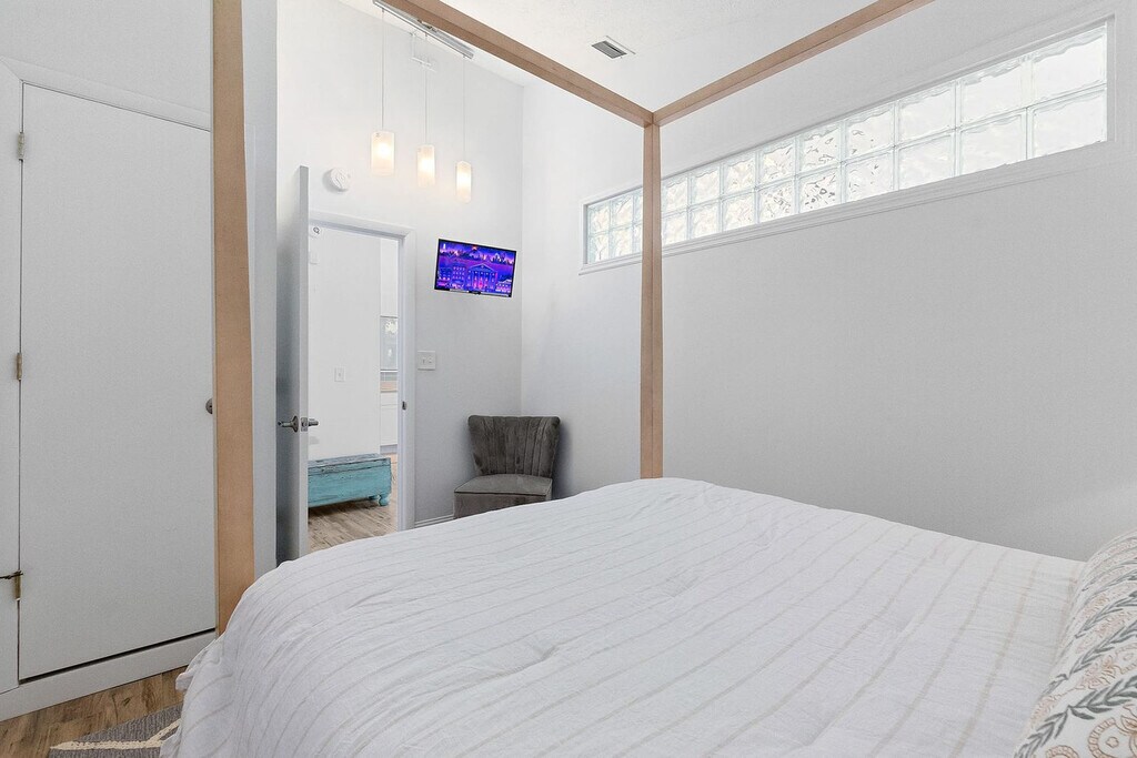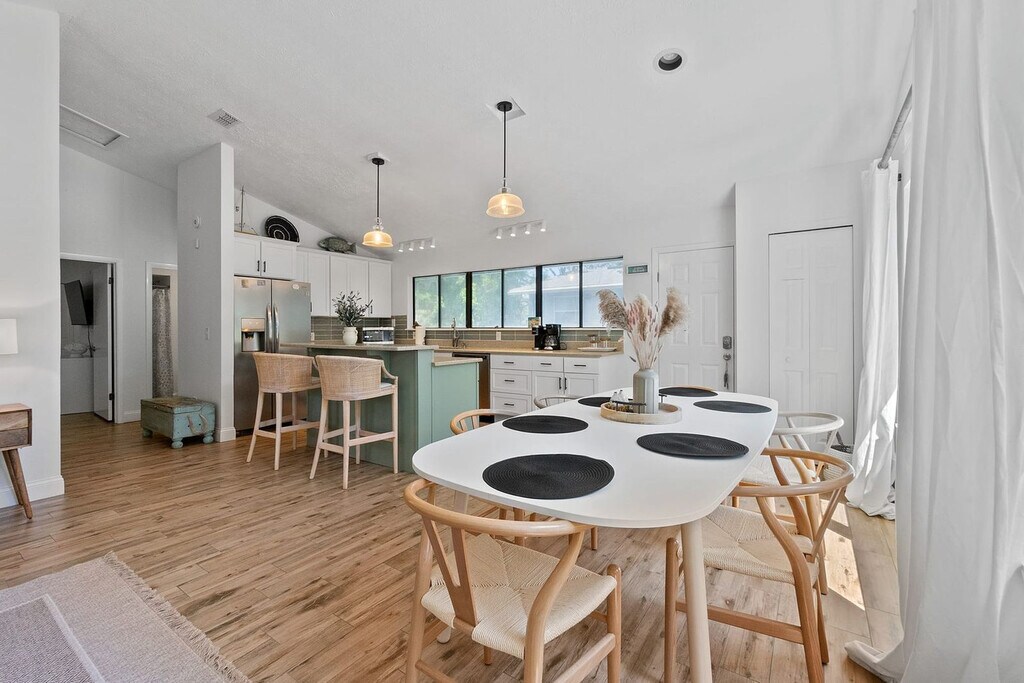 This second-floor, spacious beach apartment is located in Vilano Beach, just a short walk from the Vilano Fishing Pier, Public Beach, and popular restaurants. The apartment features a large master bedroom with a king-size bed and a private en-suite bath, as well as a guest bedroom with a queen-size bed and a queen sleeper sofa in the living room. The apartment is equipped with beach supplies galore, including a wagon, chairs, an umbrella, and toys. An outdoor shower is available to wash off after a day at the beach. For larger groups, you can book the downstairs apartment, Turtle Hideaway, to accommodate an additional four guests. Bikes and beach supplies are shared amenities with the upstairs unit and are available on a first-come, first-served basis. The laundry room is shared with separate access next to the unit and is only available during daytime hours. The parking area is also shared, with one space reserved for the Sandpiper Cottage. Vilano Beach is a quiet coastal community known for its sandy Atlantic shoreline and a fishing pier stretching into the Tolomato River. The area is surrounded by casual beach grills, pizza places, and a marina. The Vilano Beach Nature Boardwalk, near the Francis and Mary Usina Bridge, features mosaic art of local wildlife. The apartment is only a 5-8 minute drive to downtown St. Augustine. Quiet hours are enforced between 10:00 PM and 8:00 AM per St. Johns County ordinance. The minimum age to book is 21, and the primary guest must be present for the duration of the stay. No parties are allowed, and any guests visiting outside of the reservation must be approved by the hosts prior to their arrival. The home has an actively recording security camera at the front door. No pets are allowed on the property at any time, and no smoking or vaping is allowed on the property, including the front porch. Late check-outs and early check-ins are not permitted without prior approval, and guests who stay past checkout time will be charged an additional fee of $50 per hour. No illegal drugs or underage drinking are allowed, and no foreign objects should be flushed down the toilet. Parents with younger children should note that the home is not child-proofed and use the home at their own risk.