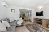 Experience the charm of Vilano Beach with this first-floor cozy beach apartment, just a short walk from the Vilano Fishing Pier, Public Beach, and popular local restaurants. This inviting space features a bedroom with a queen bed and a queen pullout sofa in the living room, perfect for a relaxing stay. Feel at home with the apartment's thoughtful amenities, including beach supplies like a wagon, chairs, umbrella, and toys for your seaside adventures. After a day at the beach, rinse off in the outdoor shower and enjoy cozy nights inside with the electric fireplace. Bikes and beach supplies are shared amenities with the upstairs unit and are available on a first-come, first-serve basis. The laundry room, with separate access next to the unit, is shared and available during day hours. Parking is also shared, with one space reserved for the Turtle Hideaway. Nestled in the quiet coastal community of Vilano Beach, this apartment offers easy access to the sandy Atlantic shoreline and a fishing pier extending into the Tolomato River. Explore the casual beach grills, pizza places, and marina surrounding the pier, or take a stroll along the Vilano Beach Nature Boardwalk, adorned with mosaic art of local wildlife. Downtown St. Augustine is just a 5-8 minute drive away. Quiet hours are enforced between 10pm and 8am per St. Johns County ordinance. The primary guest must be present for the duration of the stay, and any additional guests must be approved prior to arrival. The home is equipped with a security camera at the front door, and tampering with it may result in reservation cancellation. No pets are allowed on the property, and smoking or vaping is strictly prohibited, with additional cleaning fees applicable if evidence is found. Late check-outs incur a fee of $50 per hour. The home is not child-proofed, so parents with young children should exercise caution.