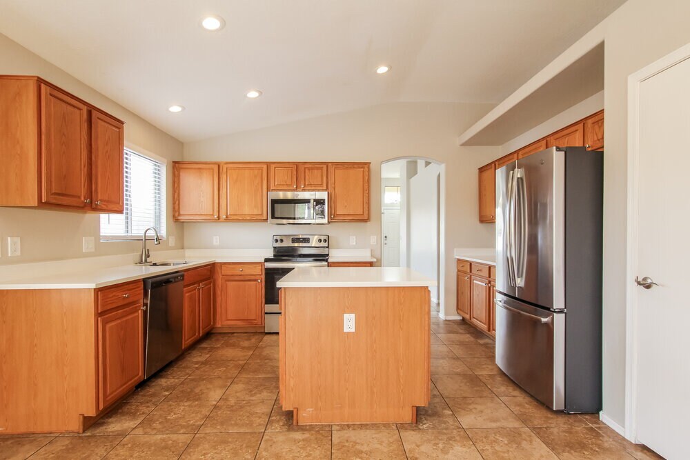 Please note, our homes are available on a first-come, first-serve basis and are not reserved until the holding fee agreement is signed and the holding fee is paid by the primary applicant. This home features Progress Smart Home - Progress Residential's smart home app, which allows you to control the home securely from any of your devices. Learn more at This home is priced to rent and won't be around for long. Apply now, while we make this home ready for you, or call to arrange a meeting with your local Progress Residential leasing specialist today. Hurry to see this four-bedroom, two-bathroom rental home in Phoenix. As you enter, notice the attractive bay window and lighted ceiling fan that brighten the dining room. Display treasured items on the living room's plant ledge. This space also features a sliding glass door for convenient access to the fenced backyard's covered patio. Prep meals on the kitchen island's quartz countertop. Quickly find the ingredients you need in the walk-in pantry. The main bedroom's tiled floor offers style and cool comfort all year long. Start your morning at the dual-sink vanity in the private bathroom, or conclude your evening with a long soak in the garden tub. A nearby park beckons you to enjoy the outdoors. Tour this home today.