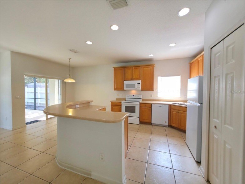 Nestled within the desirable Falcon Trace is this spacious one-story four-bedroom pool home, designed with both comfort and style in mind. The shingles were replaced three years ago and the A/C system was replaced less than three years ago. As you enter the home, you ll find a versatile bedroom or home office, framed with elegant glass French doors. Just beyond, the open living and dining room awaits, featuring a beautiful tray ceiling and abundant natural light an ideal setting for gatherings and entertaining. The private owner s suite offers a true retreat with a generous walk-in closet and a luxurious five-piece bath, complete with a dual vanity, relaxing Jacuzzi tub, separate shower, and private water closet. At the heart of the home, the eat-in kitchen boasts 42 inch upper cabinets with crown molding, a closet pantry, breakfast bar, and a dinette area. The kitchen flows seamlessly into the family room, where large windows showcase views of the sparkling screened pool. This backyard oasis is perfect for entertaining with a PVC privacy fence, oversized pool deck, and plenty of space for lounging under the cover lanai perfect for dining, and enjoying Florida living at its best. This home truly has it all: space, functionality, and a fantastic outdoor retreat. And if you want your children to meet other neighborhood families you also have the outstanding community amenties, which including a resort-style swimming pool complete with a water slide, tennis and basketball courts, a playground, and a peaceful lakefront deck perfect for relaxing, tennis courtes, and a large lake, a relaxing setting for reading to simply unwinding. The property s location is hard to beat, providing quick access to major routes such as the 417 Central Florida Greenway, Florida Turnpike, Osceola Parkway, and John Young Parkway. Residents are only a short drive from world-famous destinations like Disney, Universal Studios, SeaWorld, and Lake Nona s Medical City which includes the VA hosptial. For everyday convenience, Endeavor Elementary is within walking distance, while shopping, dining, and entertainment can be found nearby at Hunter s Creek, The Loop, and stores like Publix, Super Target, CVS, and more.